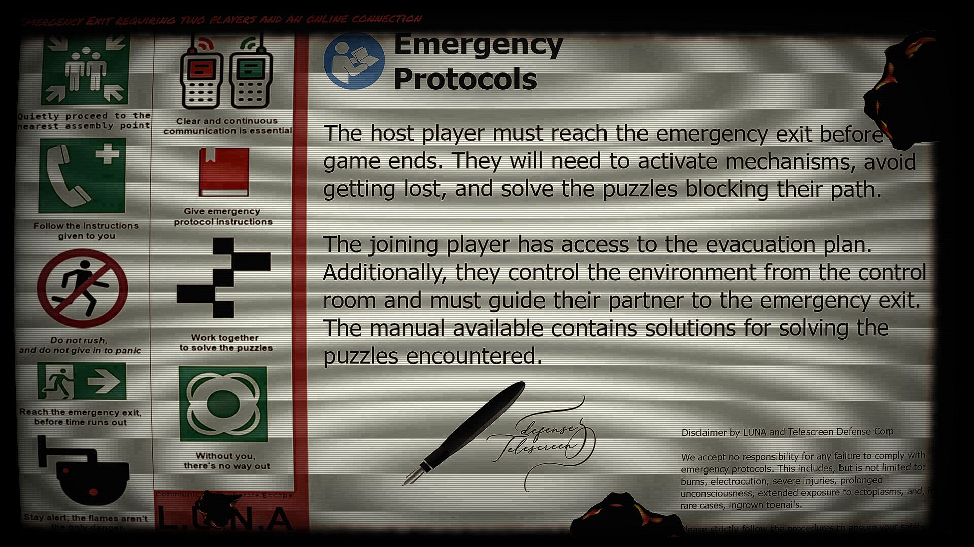 • Progresses through a dark evacuation plan, exposed to flames, traps, and biological anomalies.