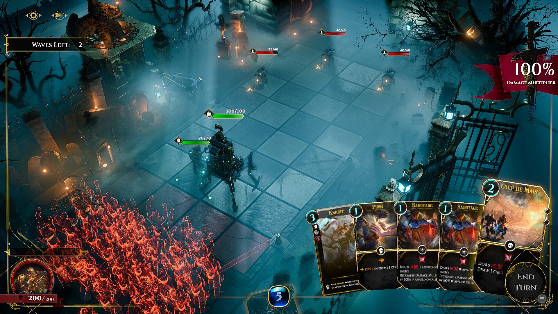 In your journey to the Throne Hall to face the King, you will have to fight turn-based combats through different locations, collect cards and upgrade them, recruit units to support your cause and enhance them, find relics and forge artifacts to boost your powers, and use all your cunning and skill to make your way through waves of enemies.