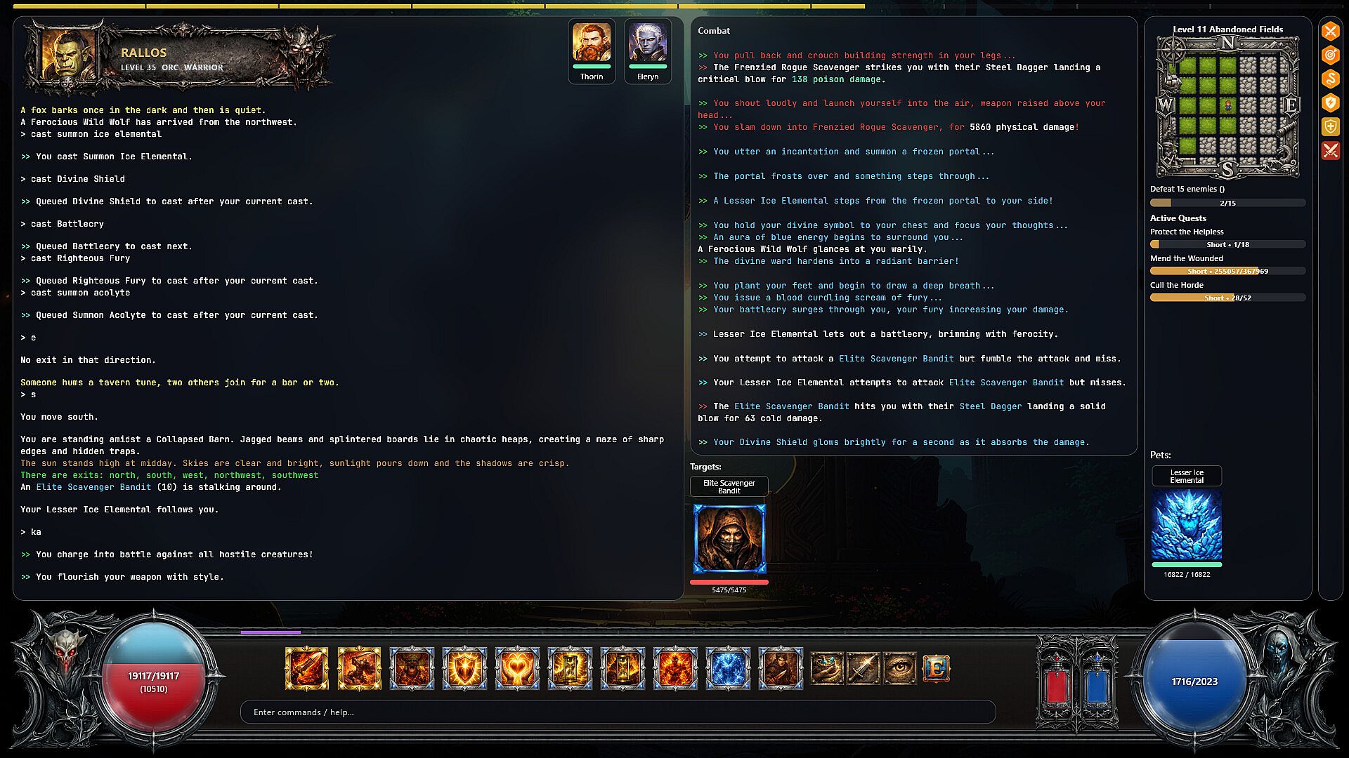 Enarian is played through a custom client designed specifically to support fast, readable, action-focused gameplay. Instead of scrolling walls of text, the interface presents structured combat logs, highlighted ability effects, clear target information, and responsive feedback that mirrors the pacing of a traditional ARPG.