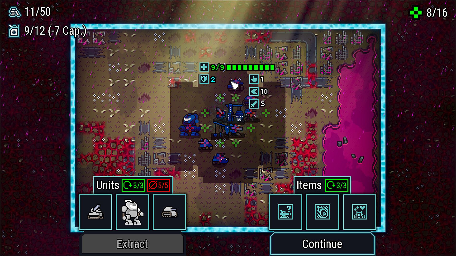 Endless Tactics is a Turn-Based Tactics Roguelite where you play as the commander of a high-risk planetary mining expedition. Defend your base from incessant hordes of alien creatures as you harvest valuable resources, and weather dangerous planetary hazards such as spore filled meteor showers and earthquakes, all while uncovering valuable drop pods and new mysterious Artifacts. Whenever things get too bleak, Extract to your orbiting spaceship to rearm, Upgrade, and unlock more dangerous and profitable worlds the more you further you get. Good luck, Commander. MechTek is counting on you to make a buck!