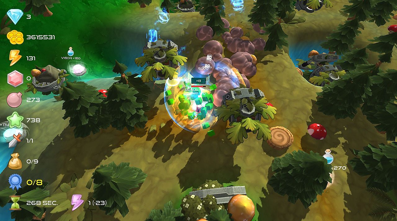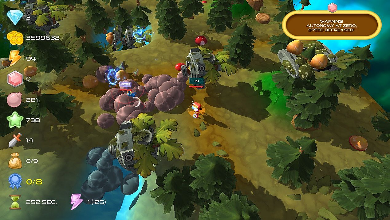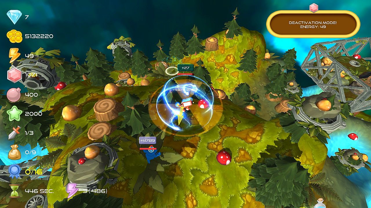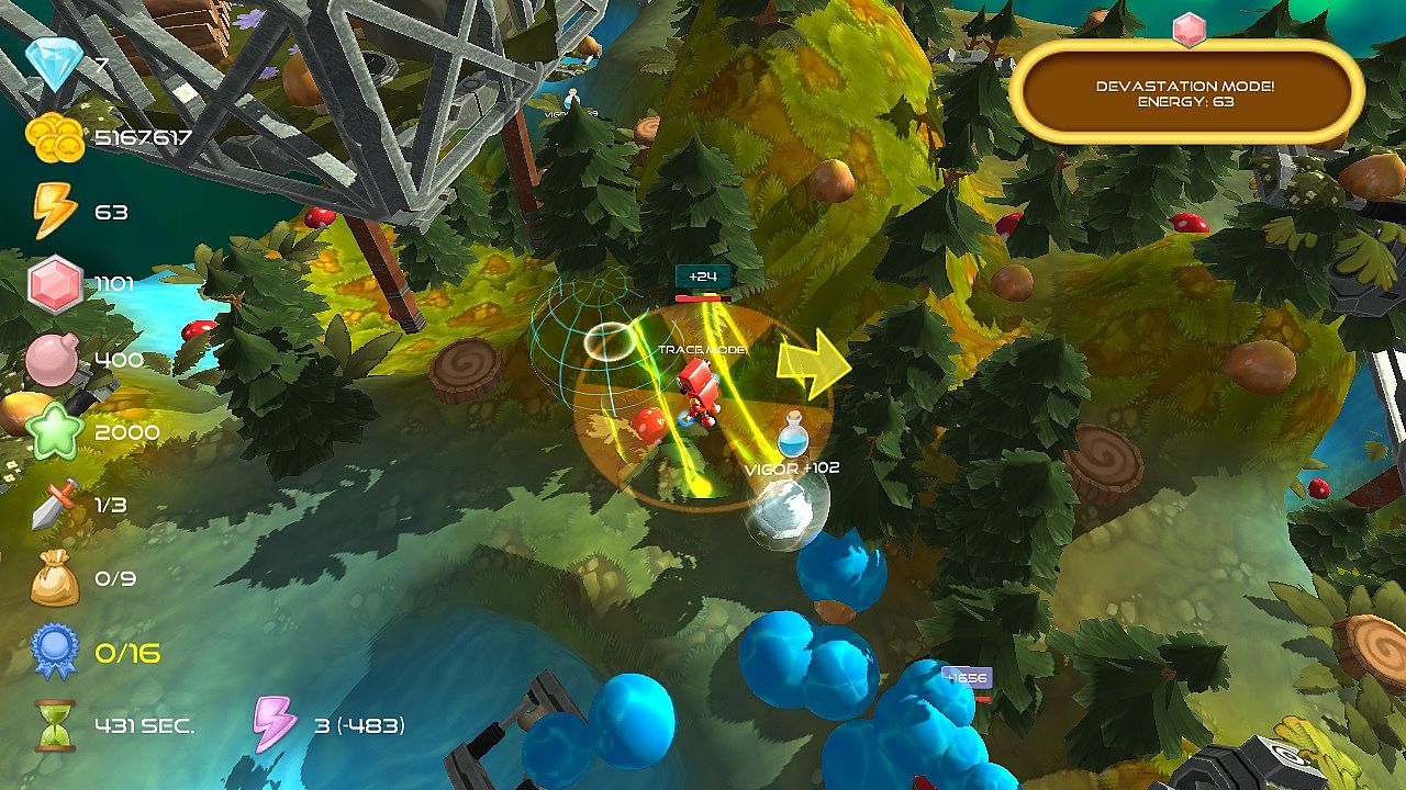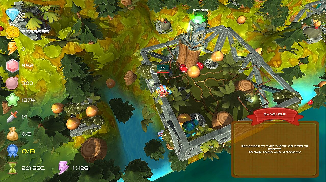 Energy is fundamental in this game.Through the energy it is possible to deactivate the power generators to overcome the levels, it is possible to use the 'terrain tool' to deform the ground at will and reach all the places of the scenario, it is possible to dig and destroy the vegetation to collect the 'Vigor' necessary for our little robot!