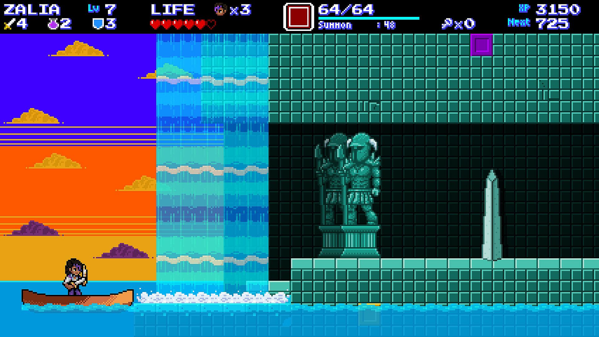 • Retro pixel art with a colorful, 16-bit-inspired aesthetic