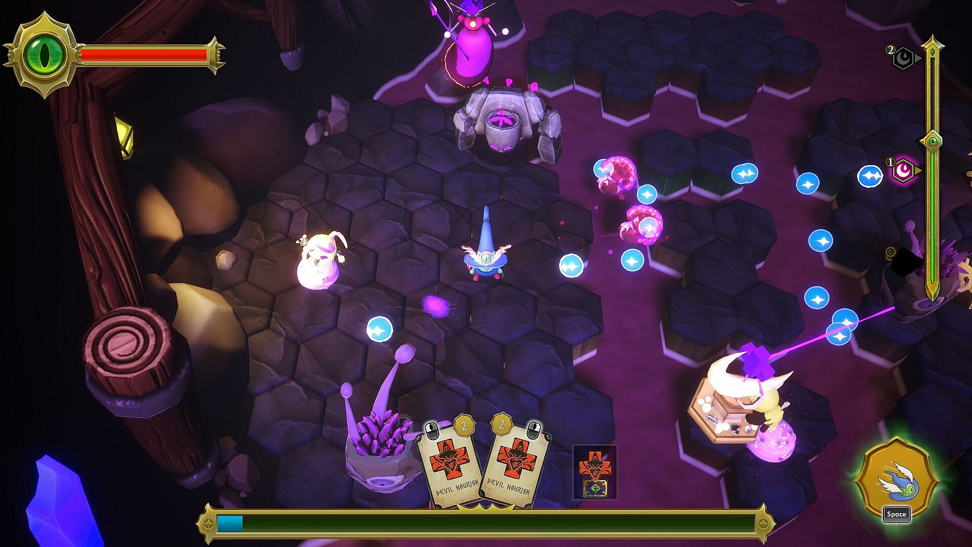 You are a little imp who, imbued with your master's powers, will make your way to the witch's house in her swamp, destroying enemies created by her and freeing all affected areas from their corruption. In this friendly and terrifying auto-battler, you will collect the souls of enemies trapped by the witch to power your own attacks. Level by level, you will unlock new powers that your master will give you and you will be able to put together your own set of attacks and skills to face everything that the witch can throw at you.