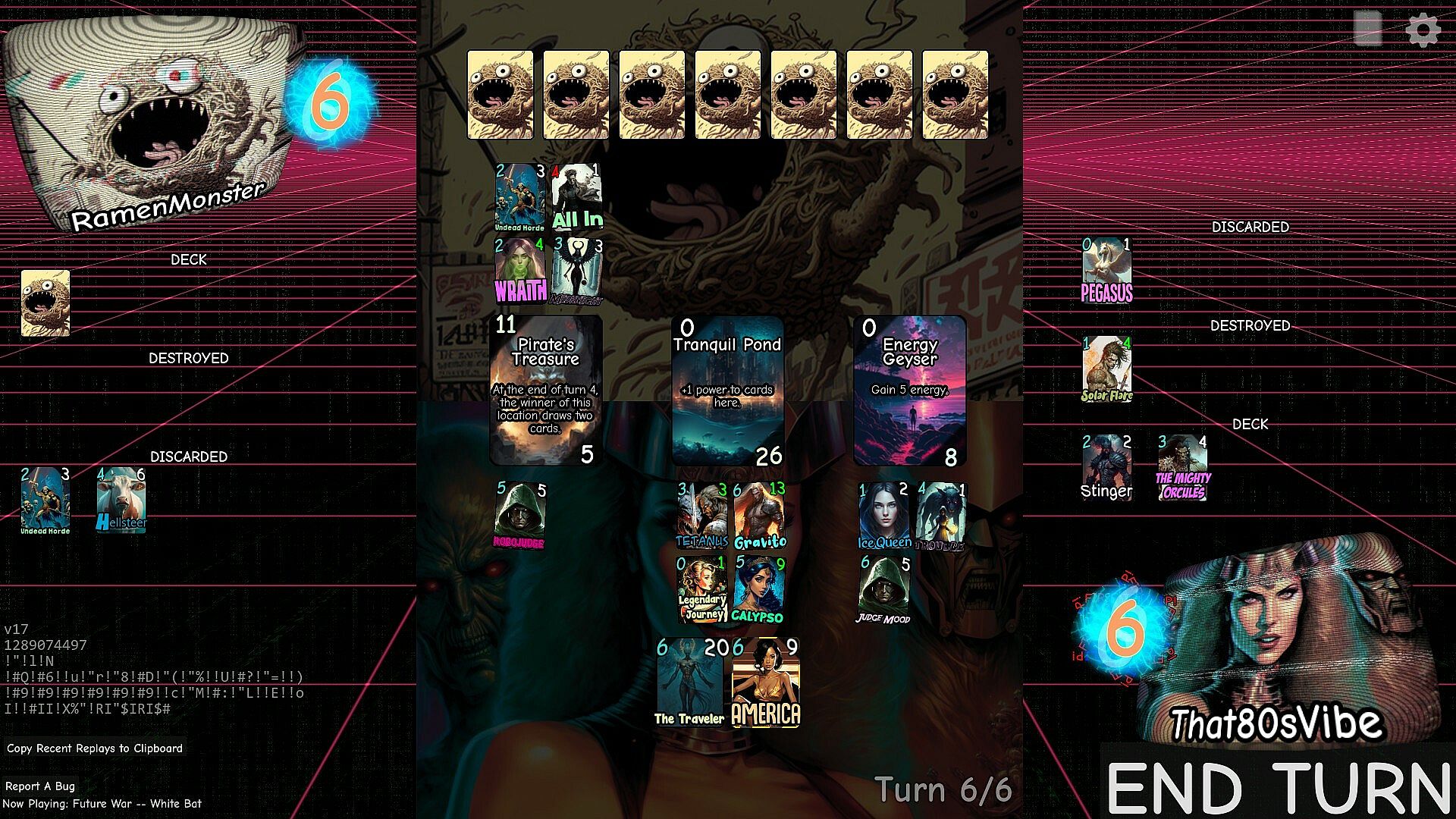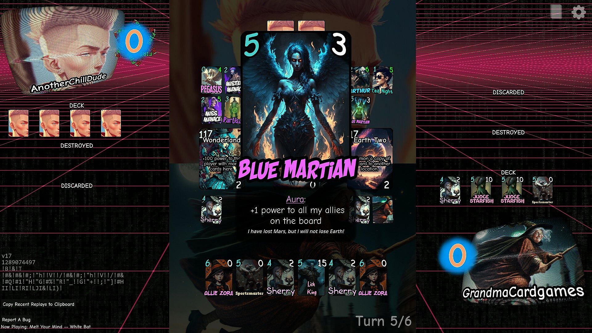 Forge a deck containing your favorite card functions from NOWHERE IN PARTICULAR. Enjoy images created by an AI pumped full of LEGALLY ALLOWED SUBSTANCES. Listen to the finest in royalty-free synthwave.