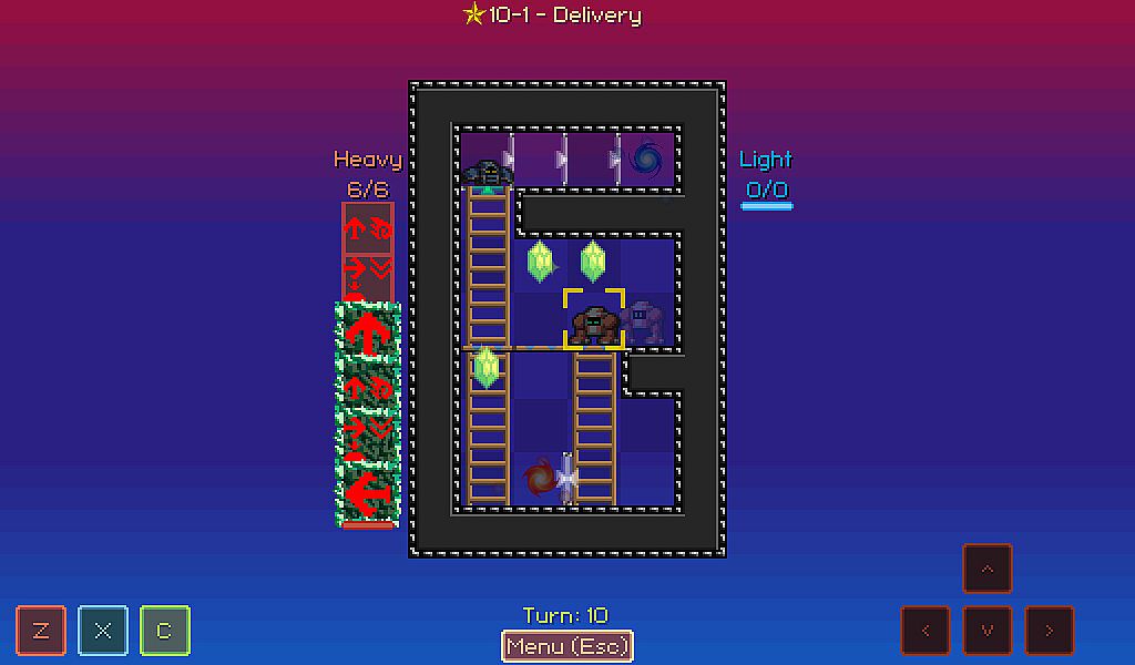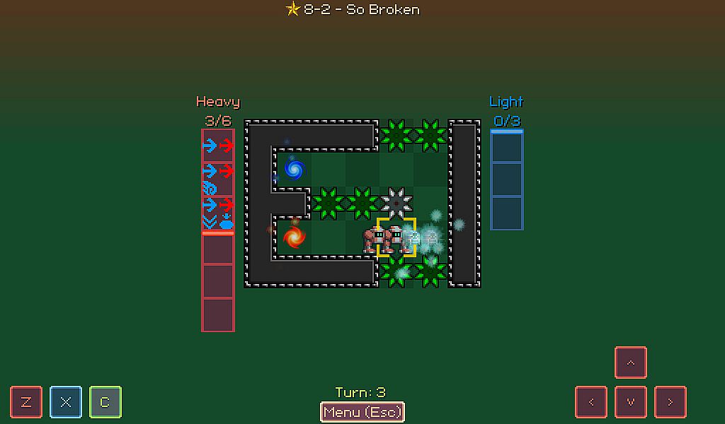 • A turn based, tile based thinky puzzle game. No dexterity elements or hidden information - Build a mental model of how the game works to succeed.