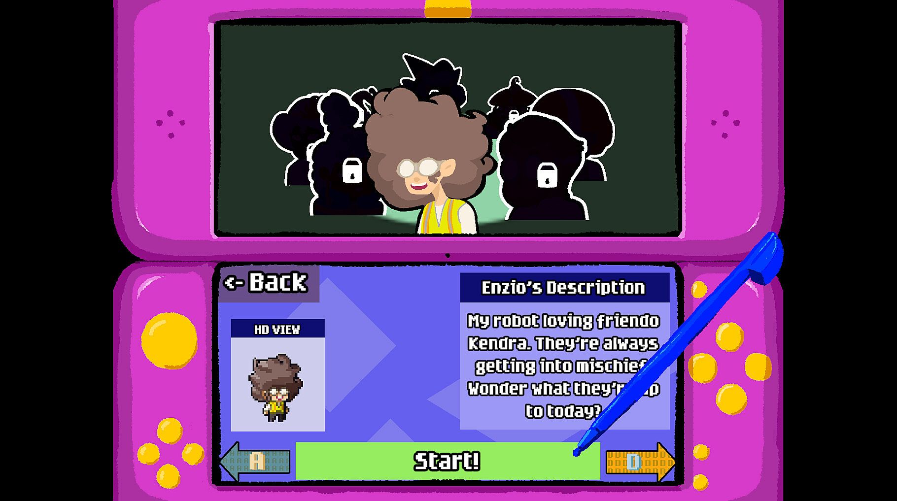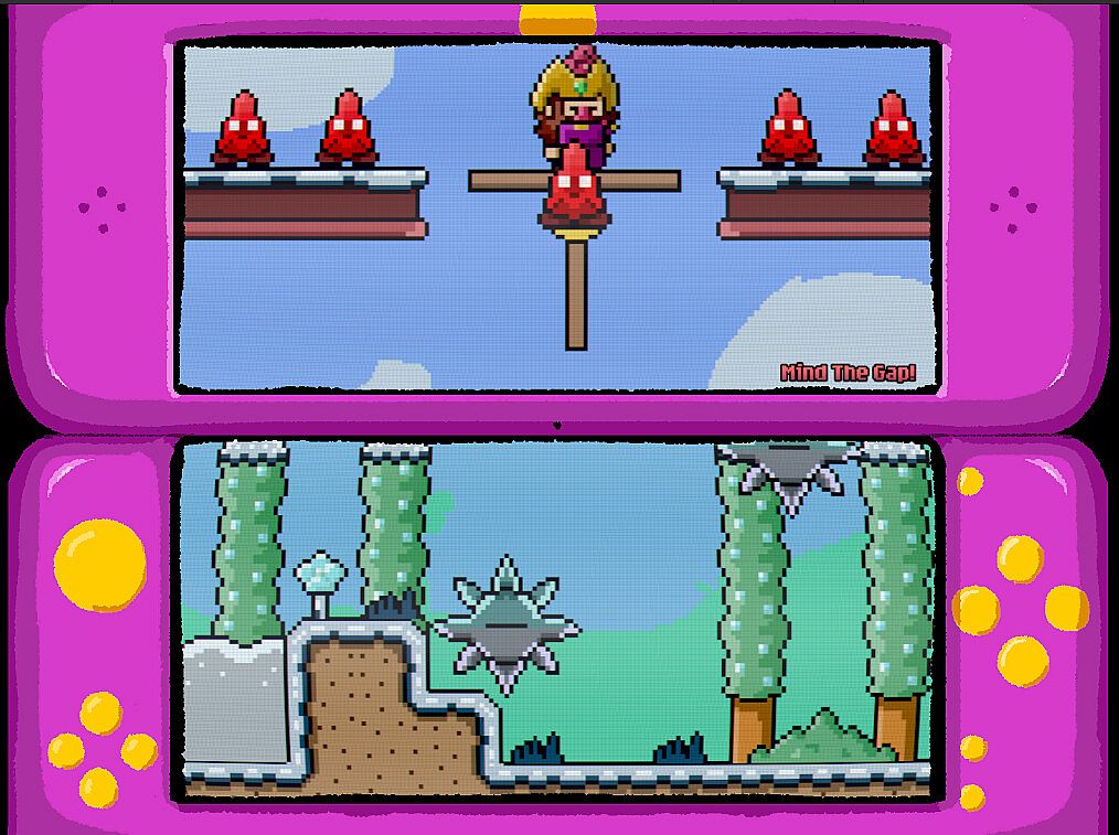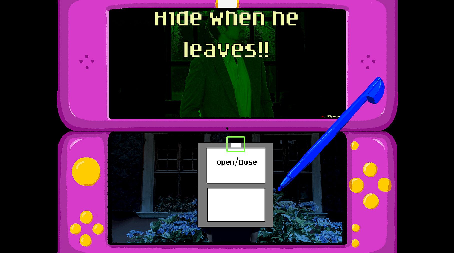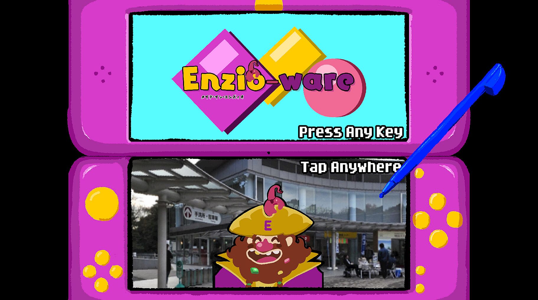 Enzio-Ware is presented in an experimental dual-screen format we're calling the 『Enzio-System』 , emulating a clamshell game console from the olden days. Some microgames even require you to close the 『Enzio-System』!