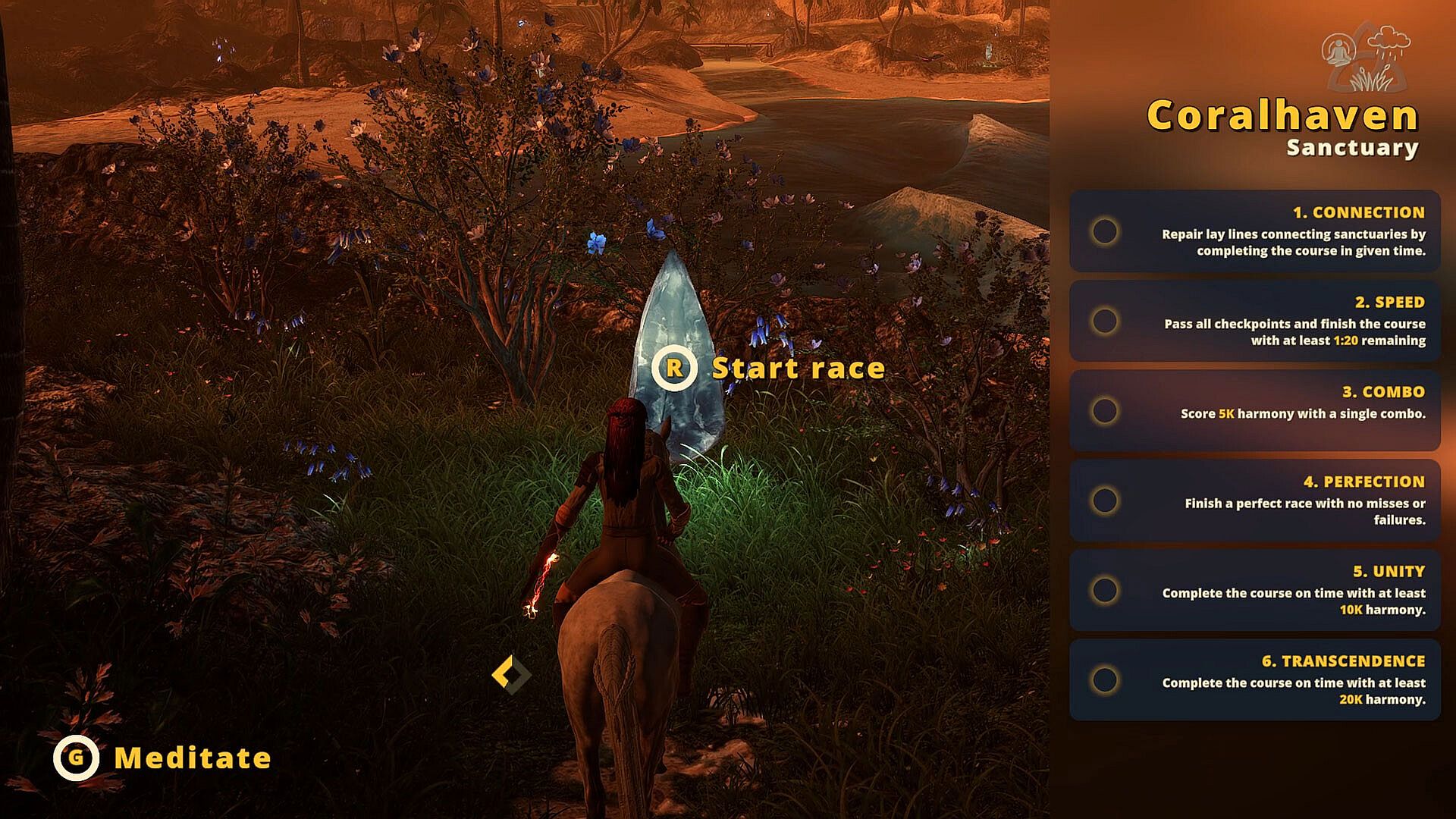 Reconnect Equitania's leyline network by racing and completing challenges. Speed is important, but it's more about precision and timing. Checkpoints, obstacles, and targets all reward between 1 and 100 harmony points based on your accuracy. Chain them together to earn huge combo bonuses.