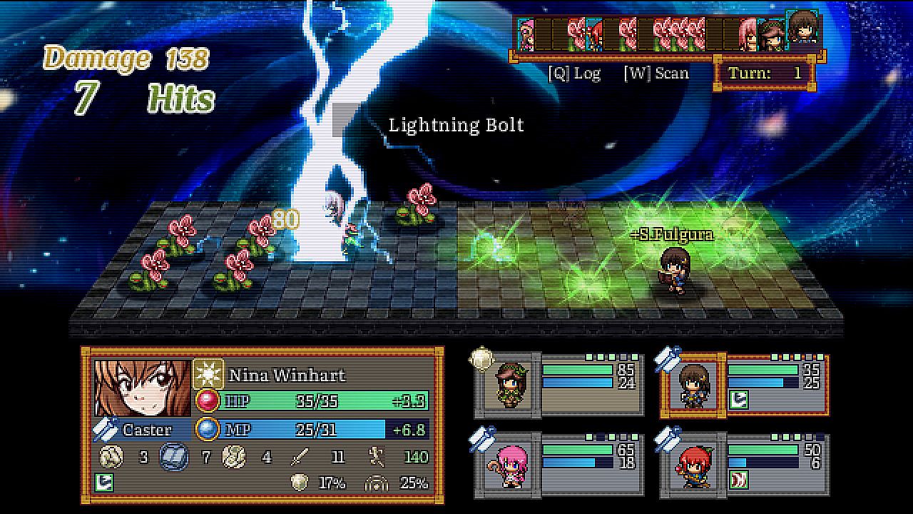 • Grid Battle System; fight various enemies on a chess-like battlefield. A slow tactic-like battle mechanics that emphasize position and proper abilities usage, since the battlefield can be affected by any present pieces.