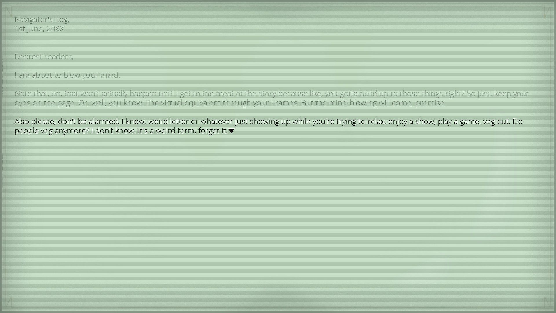 Enter the memories of Raine as she explores the text-based world of VerdaMUCK, a simulation of the old network within the vast cerebrally-interconnected network of the near future. Meanwhile, a mysterious individual known only as The Navigator exposes the truths of the Cerenet as a conspiracy-in-the-making begins to unfold.