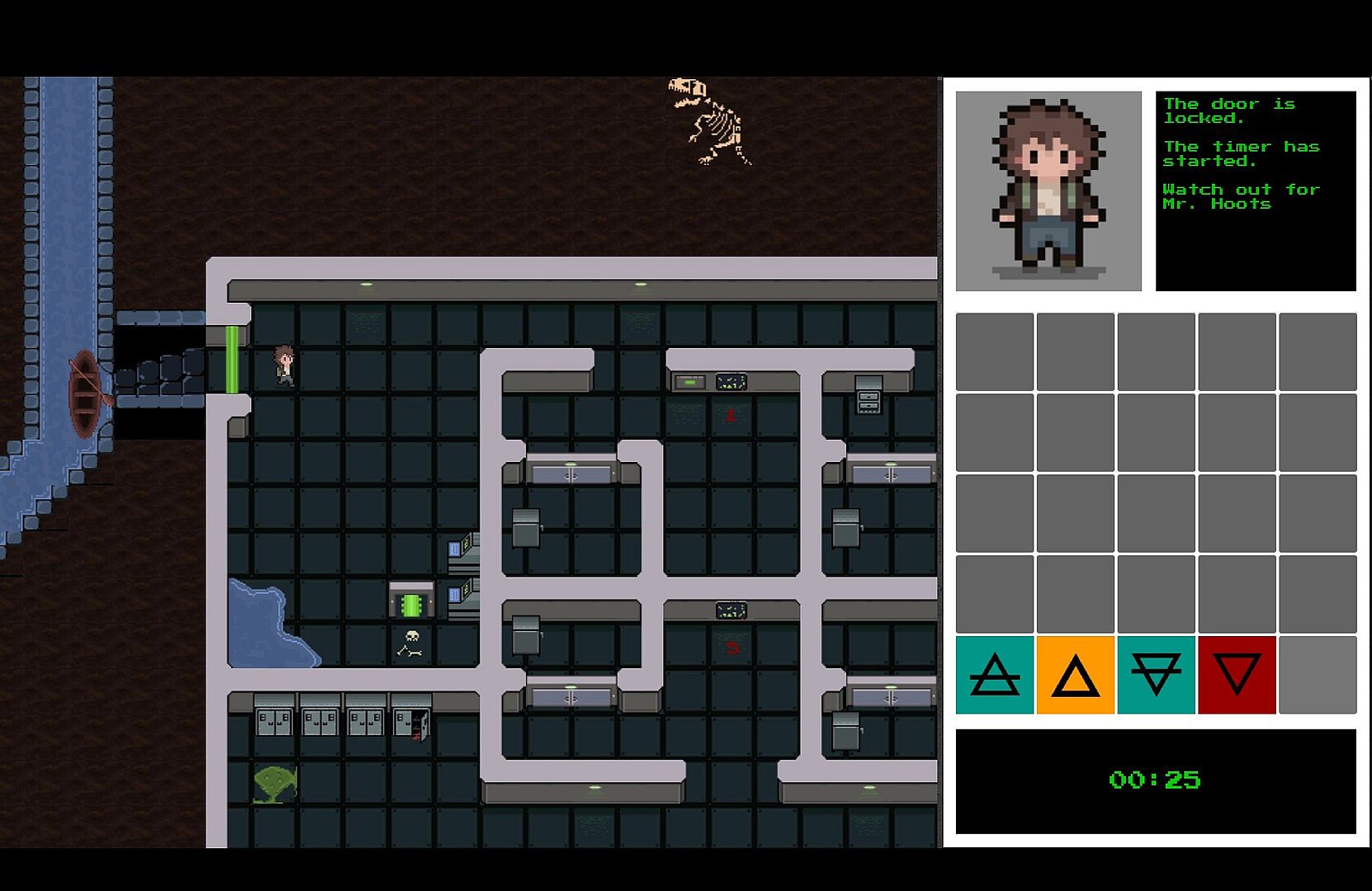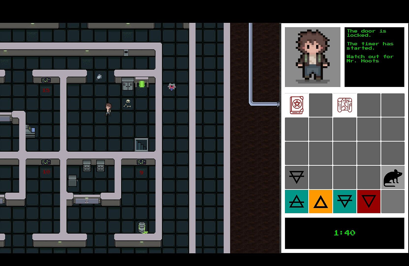 Escape from the Archives is a 2D top-down game. You will navigate your player through an underground labyrinth containing 15 rooms. In each room, an artifact is locked. To collect the artifact, you must correctly answer a trivia question posed by SKTR, the rogue AI in charge of the Archives. There are shortcuts between rooms, an owl named Mr. Hoots who might steal one of your artifacts if you don't present him with a tasty mouse, a time warp drone, and other surprises.