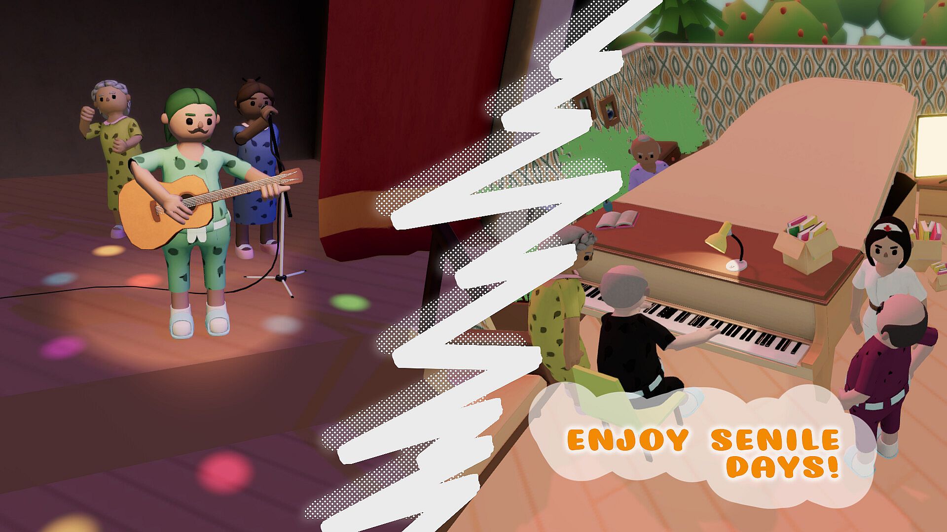 "Escape from the Nursing Home" is a role-playing game in which you have to try on the role of a nursing home patient. Listen to the nurses and follow the schedule or plan an escape!