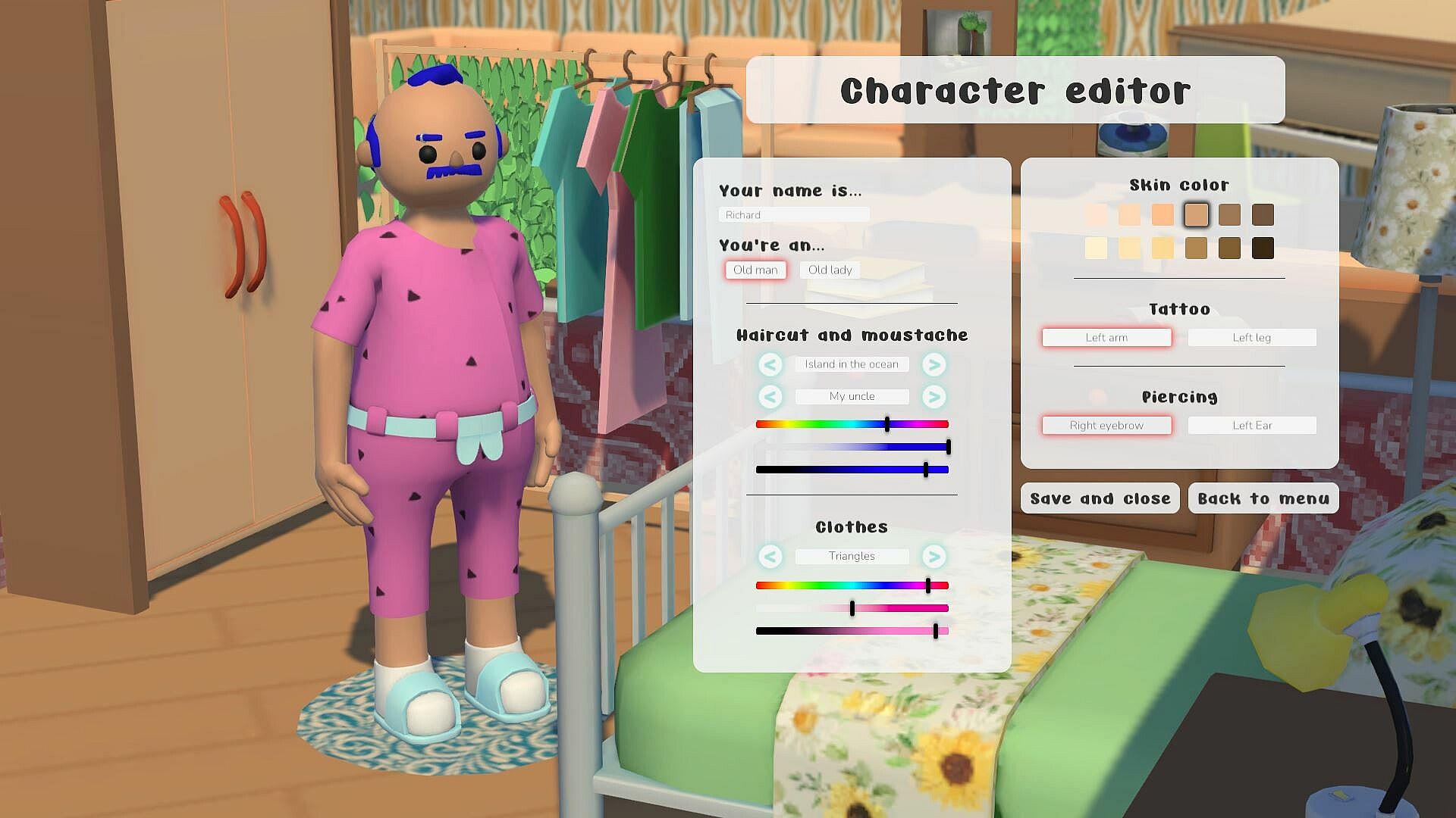 In the game "Escape from the Nursing Home" you can create a character to your liking. You can play as a nice old lady with an elegant haircut, or you can create an old rocker with tattoos, piercings and the most old-fashioned hairstyle!