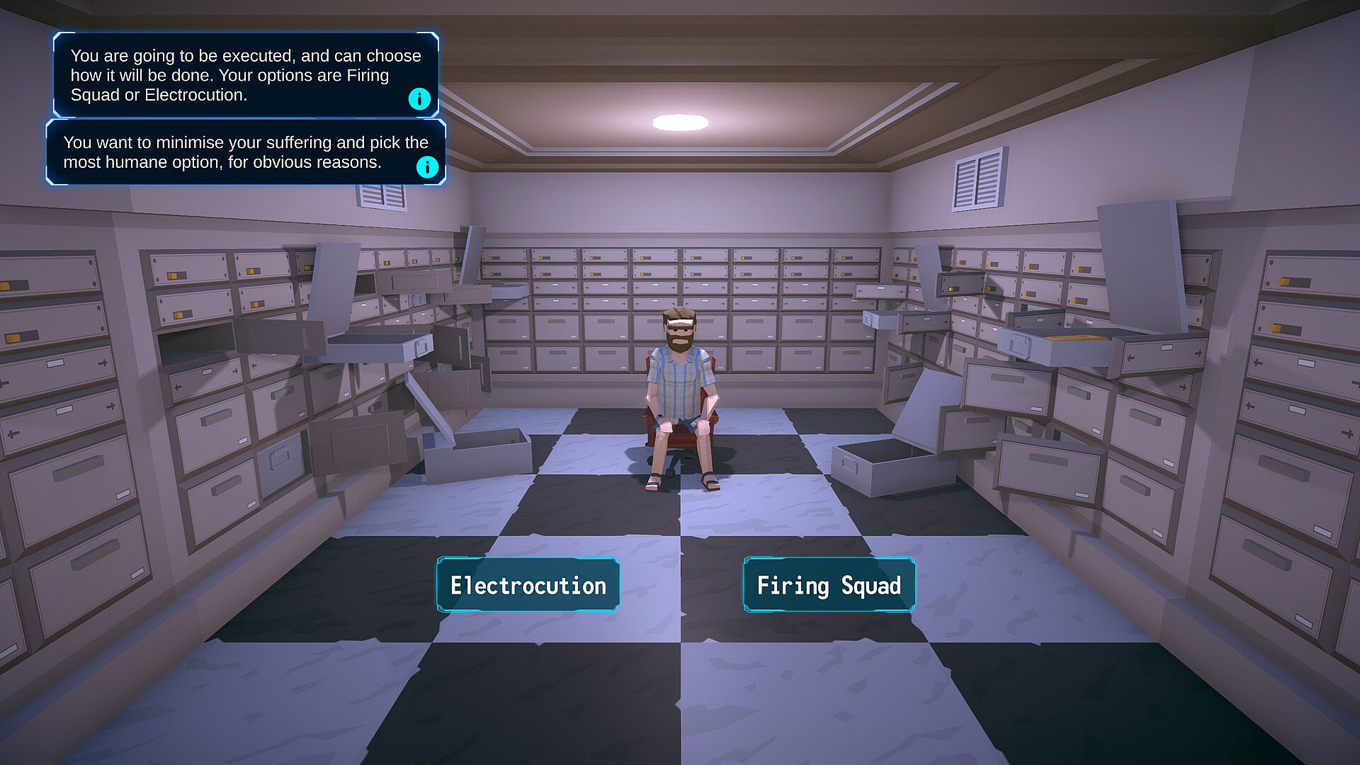 Their solution? A test. Prove you’re not innately evil, and you’ll go free. Fail... and it’s curtains. Or lasers. Lethal ones.