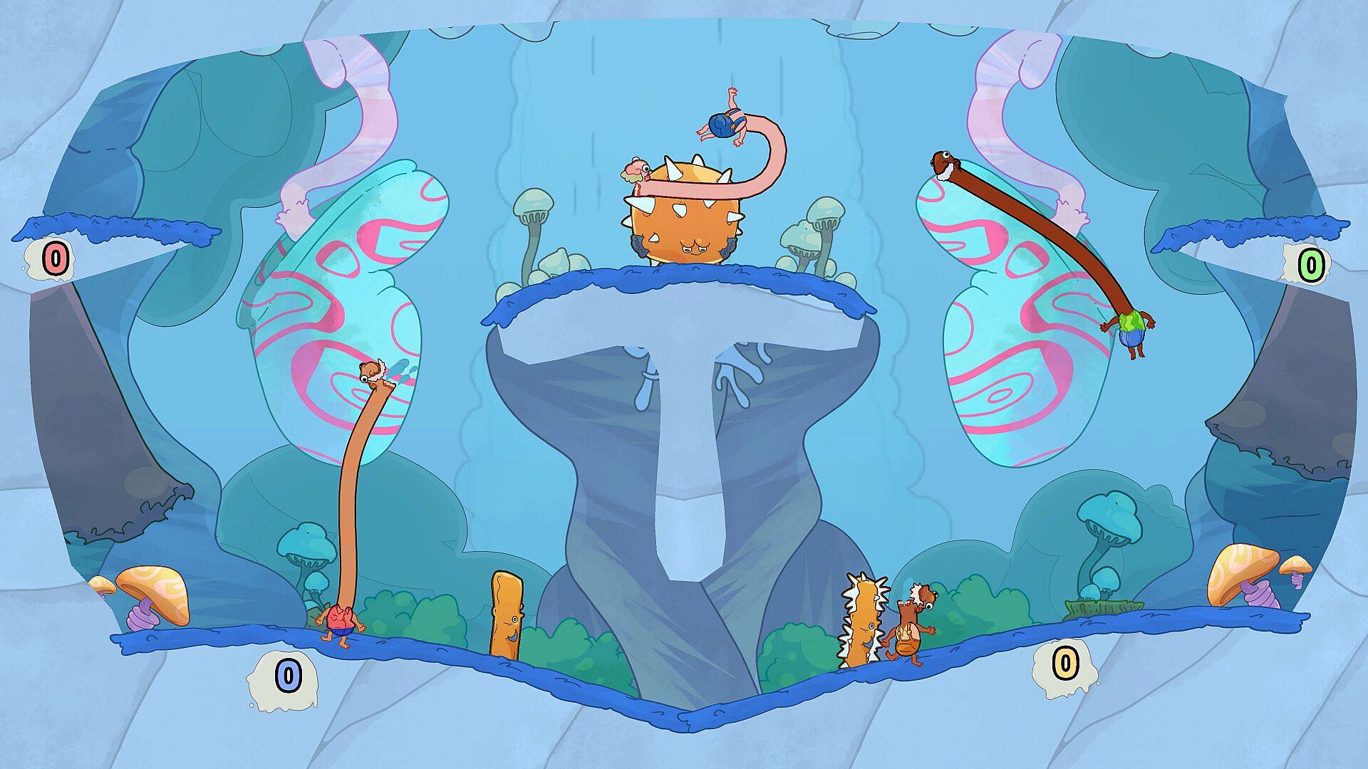 Esophaball, Spartagus, and Gulletorax await challengers! Compete, neck against neck, in team-based sports, combative arena, and traversal trials to determine who has the greatest gullet.