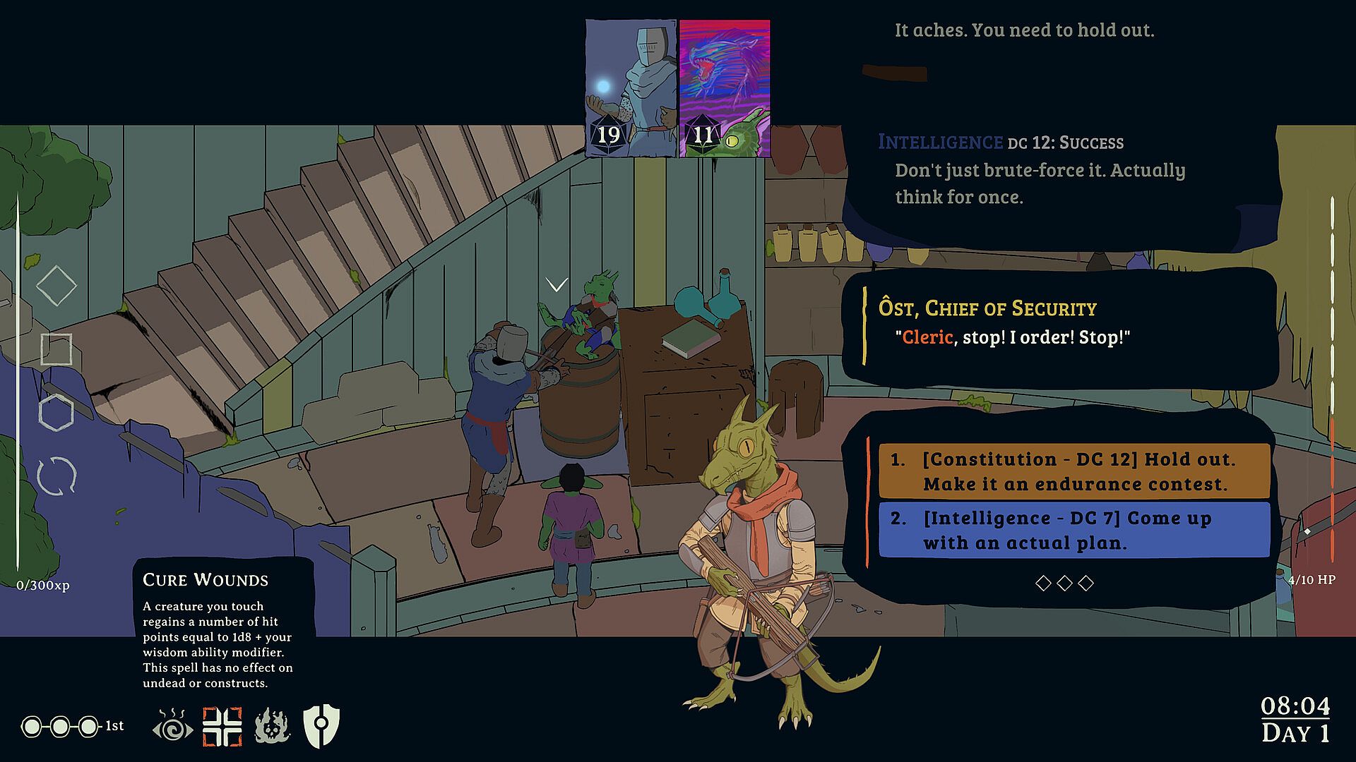 Create the world’s worst cleric. Take on the city through tense TTRPG dice rolls. Struggle to maintain control with your Stats chiming in at every moment. Let the voices guide you into insane encounters and hit that natural 20 right when you need it. Become the most interesting player at the table and completely ruin your DM’s day.