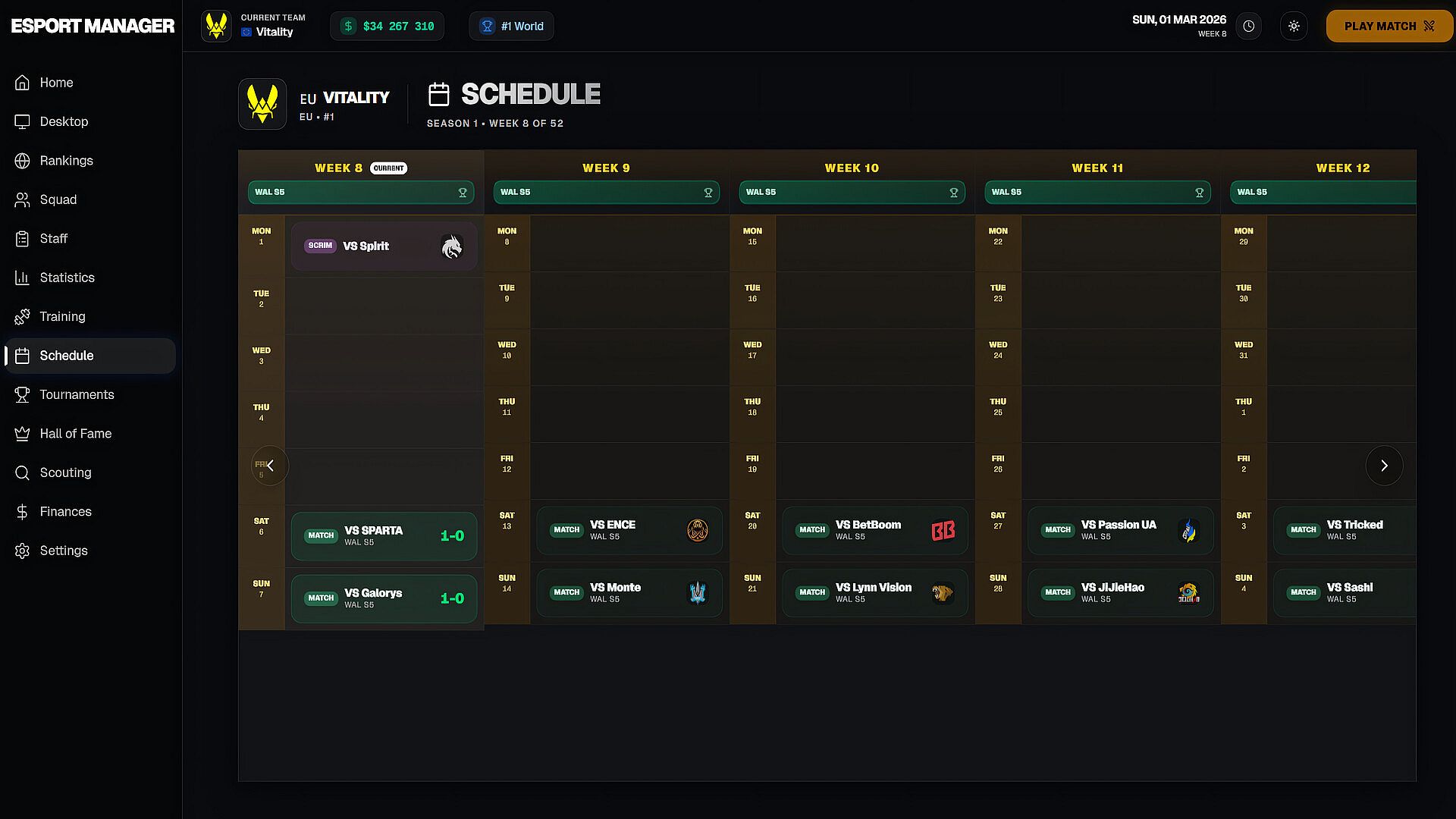 Step into the role of a professional esports manager in a deep, immersive simulation focused on tactical FPS competition. You’re not just coaching matches, you’re running an entire organization. From scouting young talent to mastering map vetoes, managing finances, and climbing global rankings, every decision shapes your path to the top.