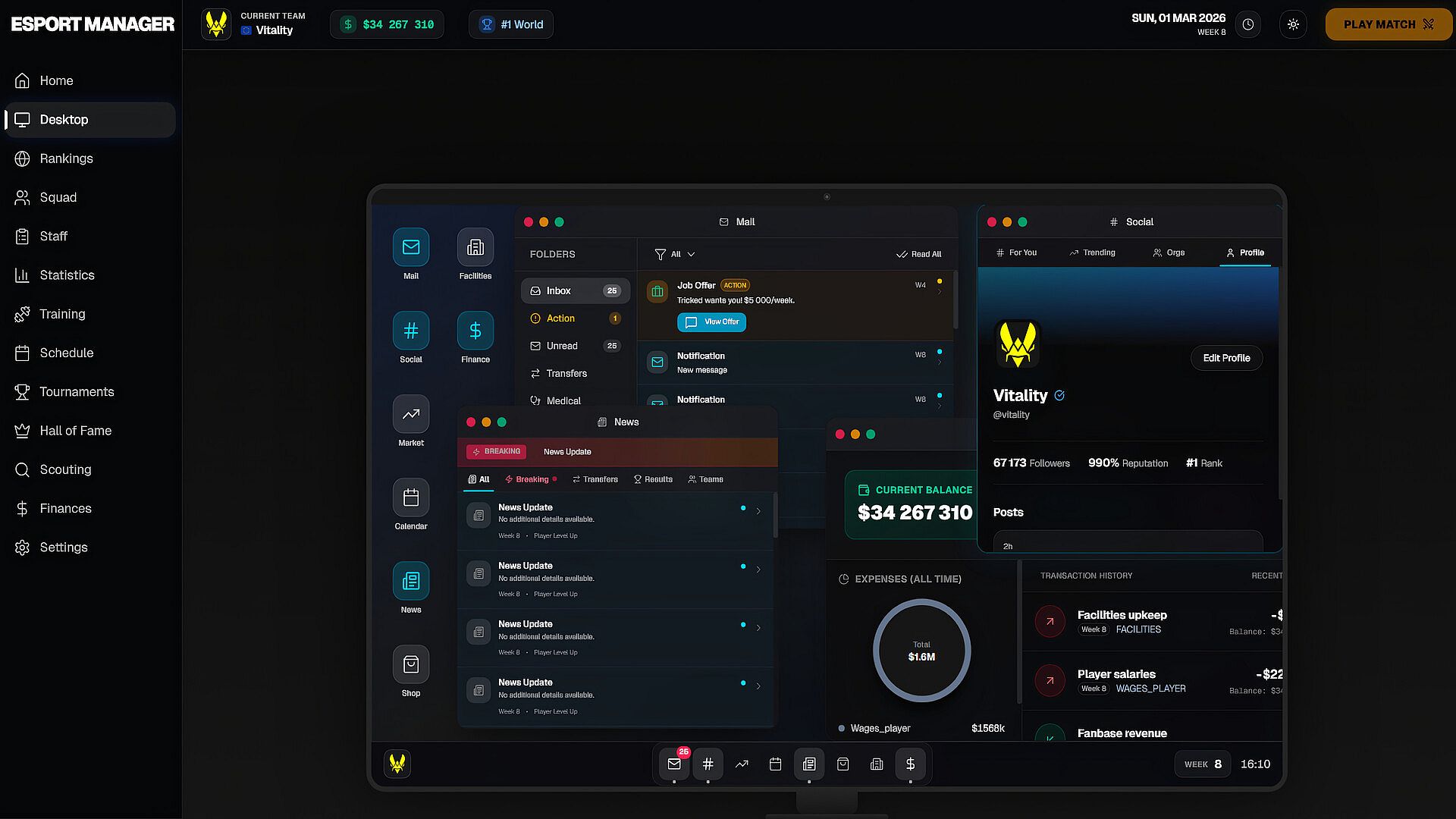 • Deep FPS esports management simulation