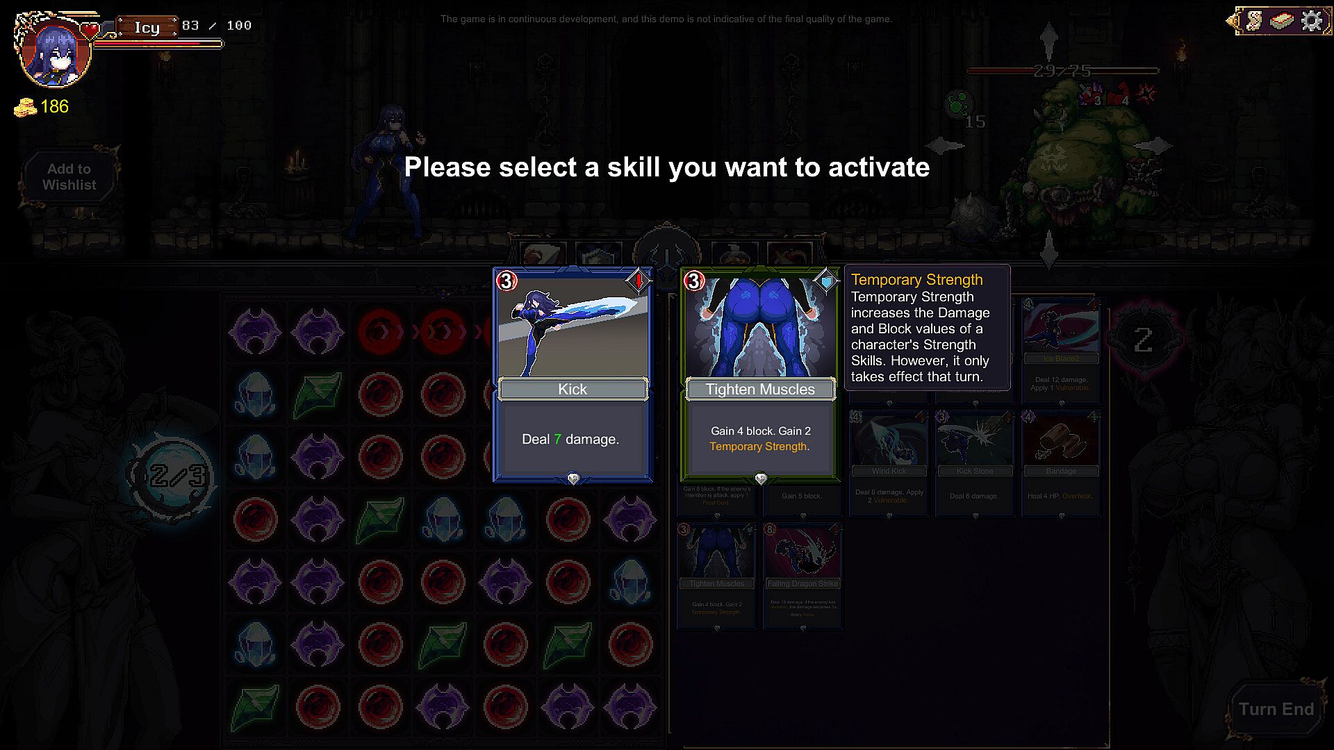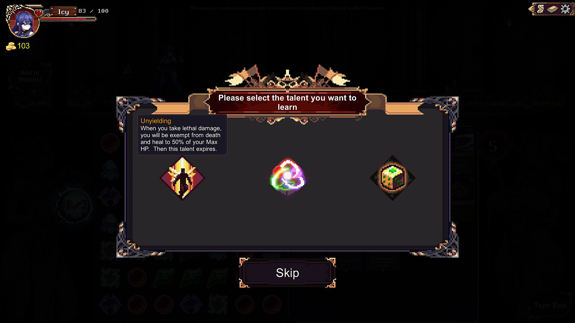 Update 2025/02/06: Updated all art assets. Turned the original skimpy animation into a stop-motion presentation similar to Dark Dungeon that make the skill shows with visual impact.