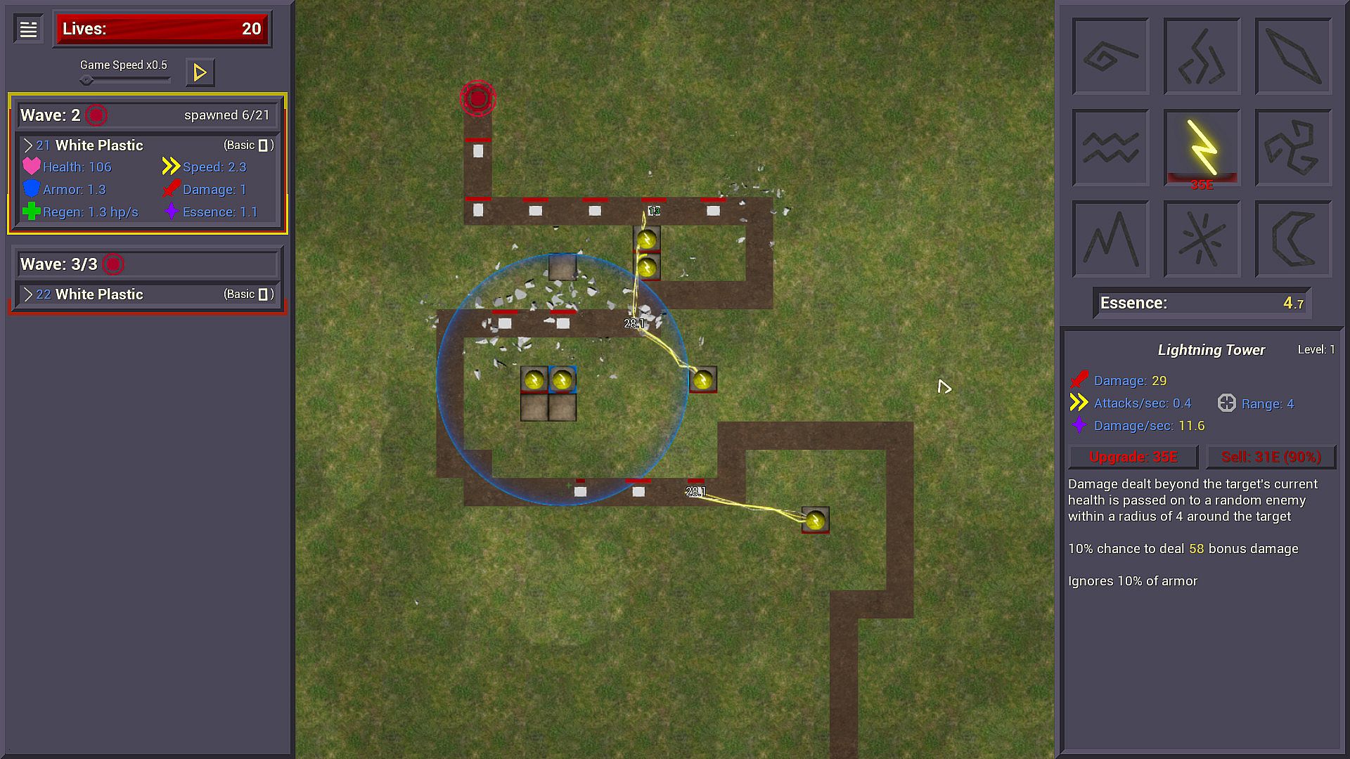 With nine distinct elemental towers and 14 unique enemies, the game encourages deep interaction and strategy discovery. Customizable settings ensure infinite replayability, letting you create personalized challenges that reward greater risks with better progression.