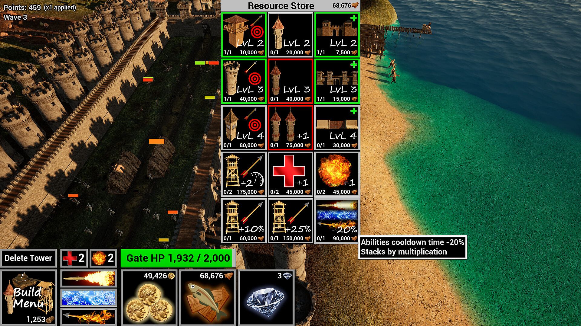 Upgrade your spells to compliment your towers, keep up with the waves, or boost your income. Feeling behind? Use your panic spells to buy some time and get a chance to catch up, but be careful as they are rare.
