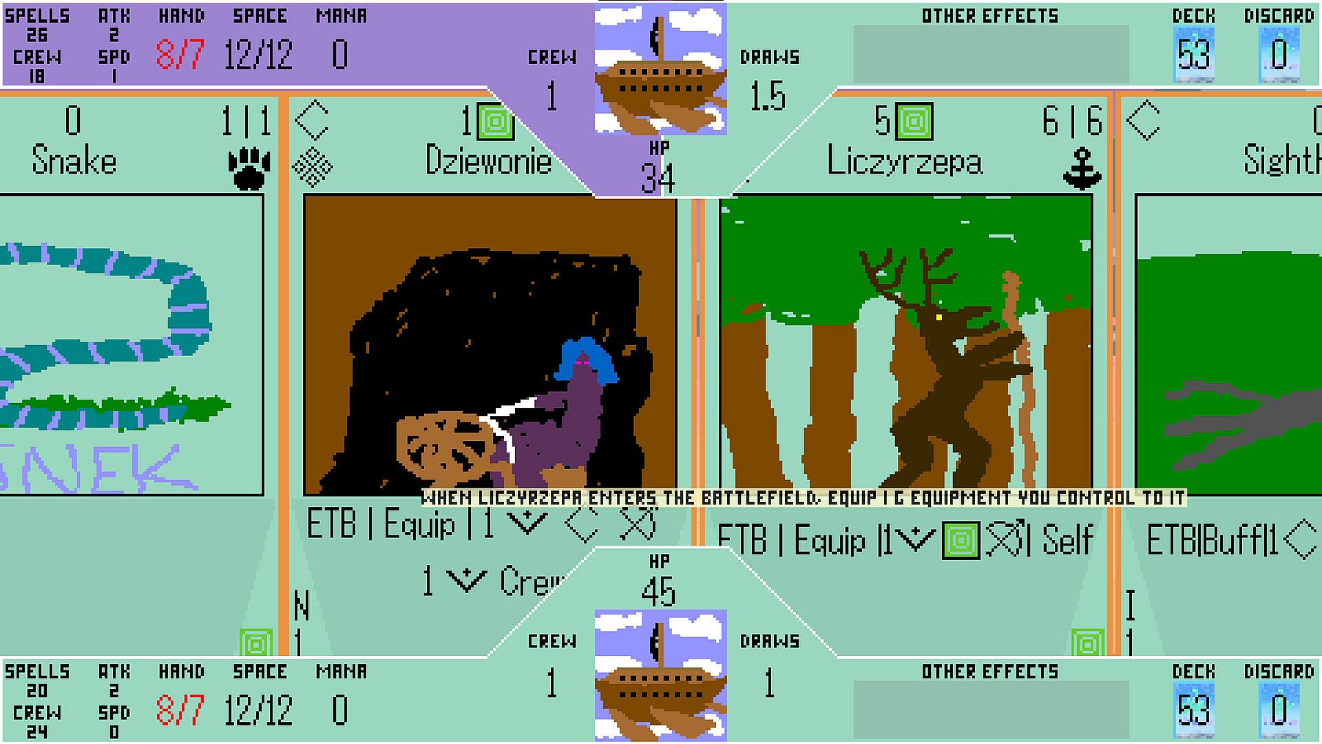 Remember when handhelds used to have single player card games, where you play through an RPG-like story collecting cards and having battles along the way? This long-dormant genre has always been one of my favorites, so I created Eternal Skies because I wanted a new one. Eternal Skies is a TCG RPG, where you advance through the story by having card battles. The card game and mechanics themselves were created completely from scratch, and are inspired by Slavic mythology and the old Dreamcast game Skies of Arcadia. Don't like the way the card game plays? Change it! There is a built-in card editor, and almost everything else relevant to the game is stored in easily editable plaintext.