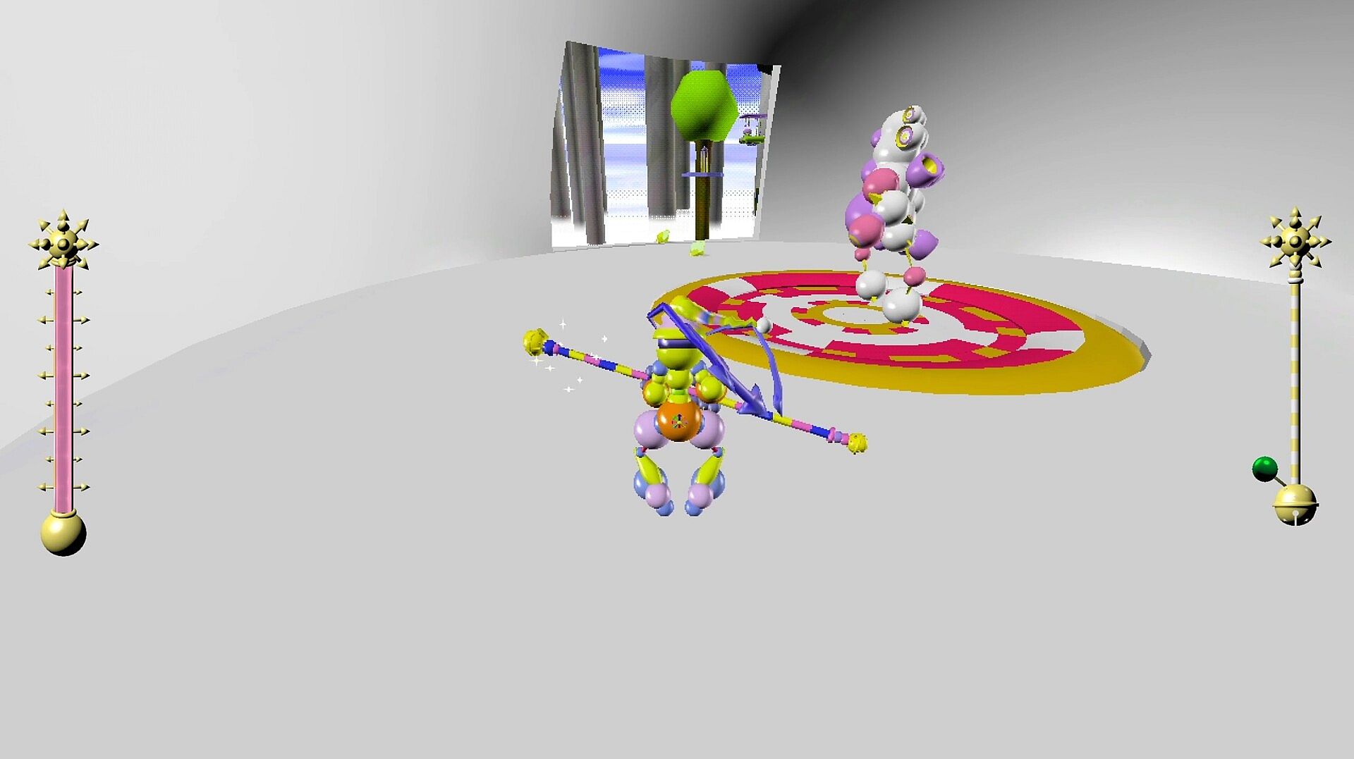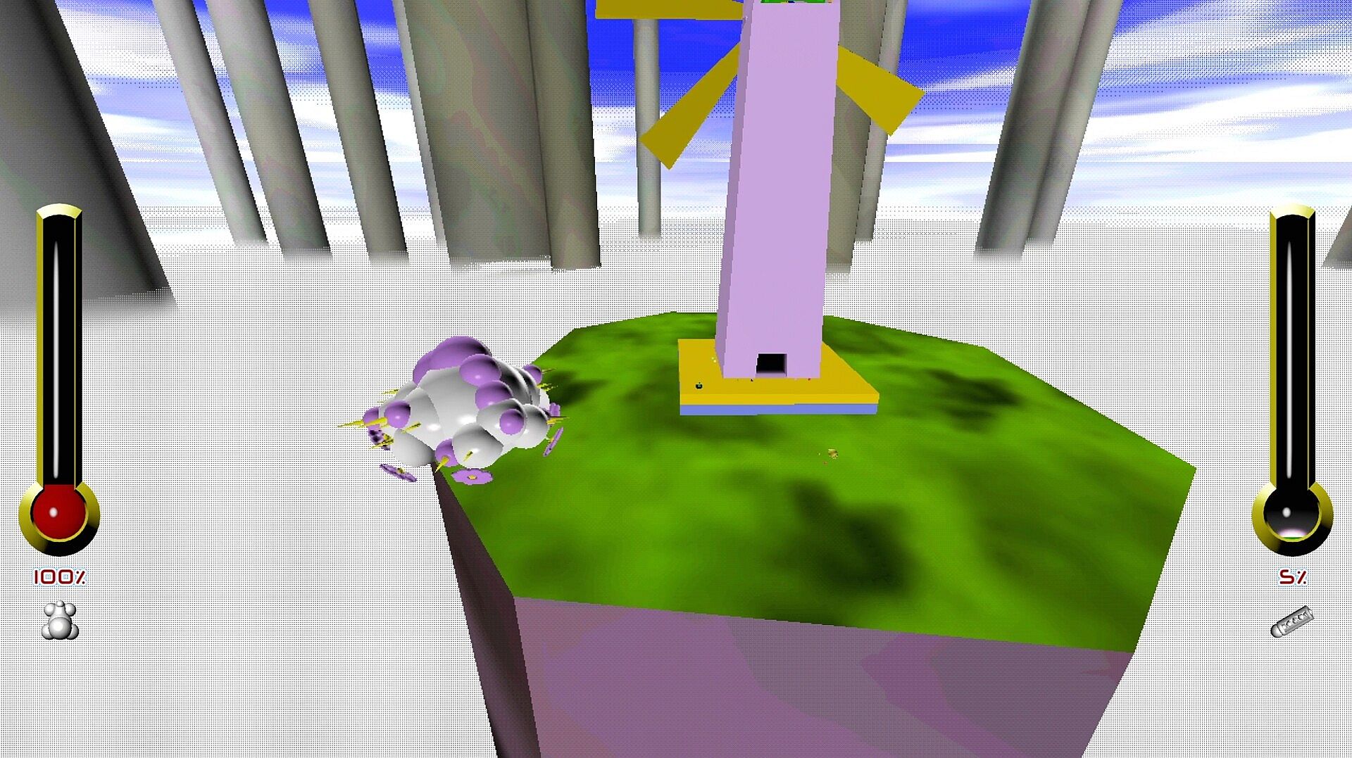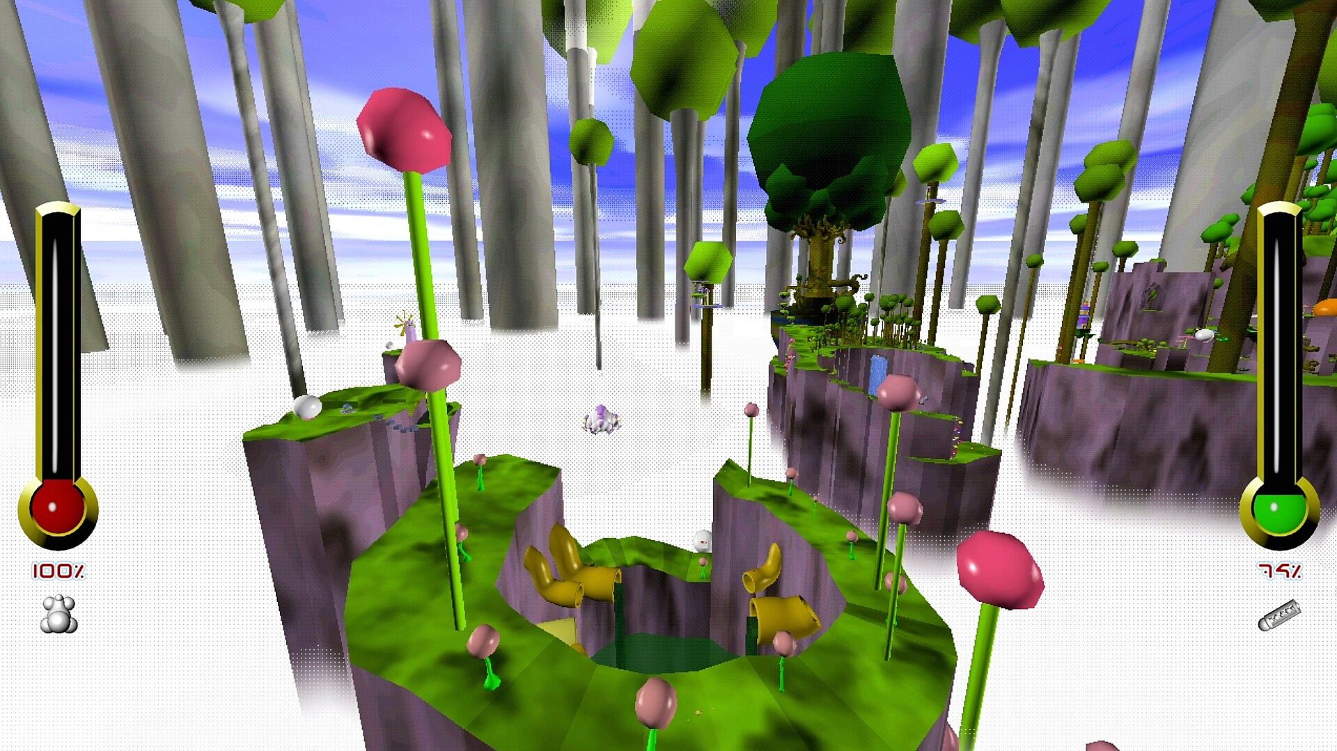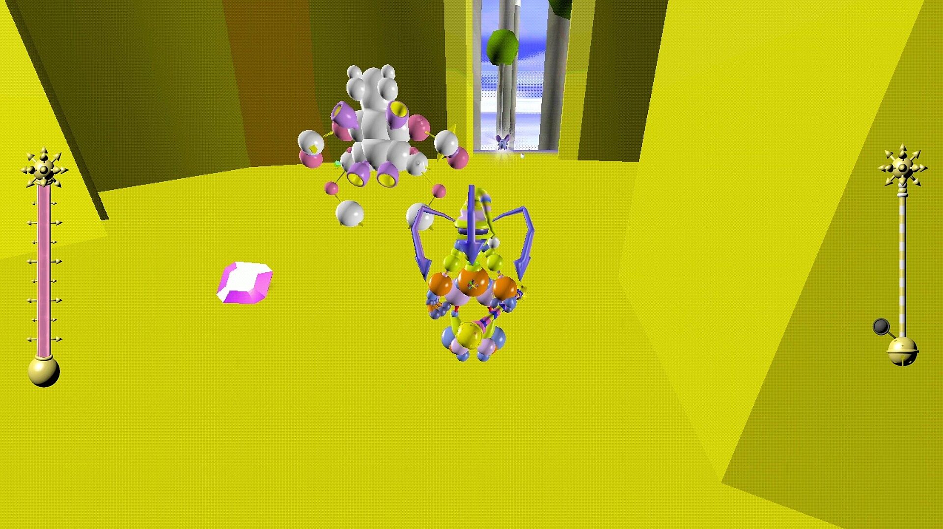 Bounce, wall-run, wall-flip, dash, slide, and ground-pound around a grotesque world with responsive, fast-paced kinematic movement.