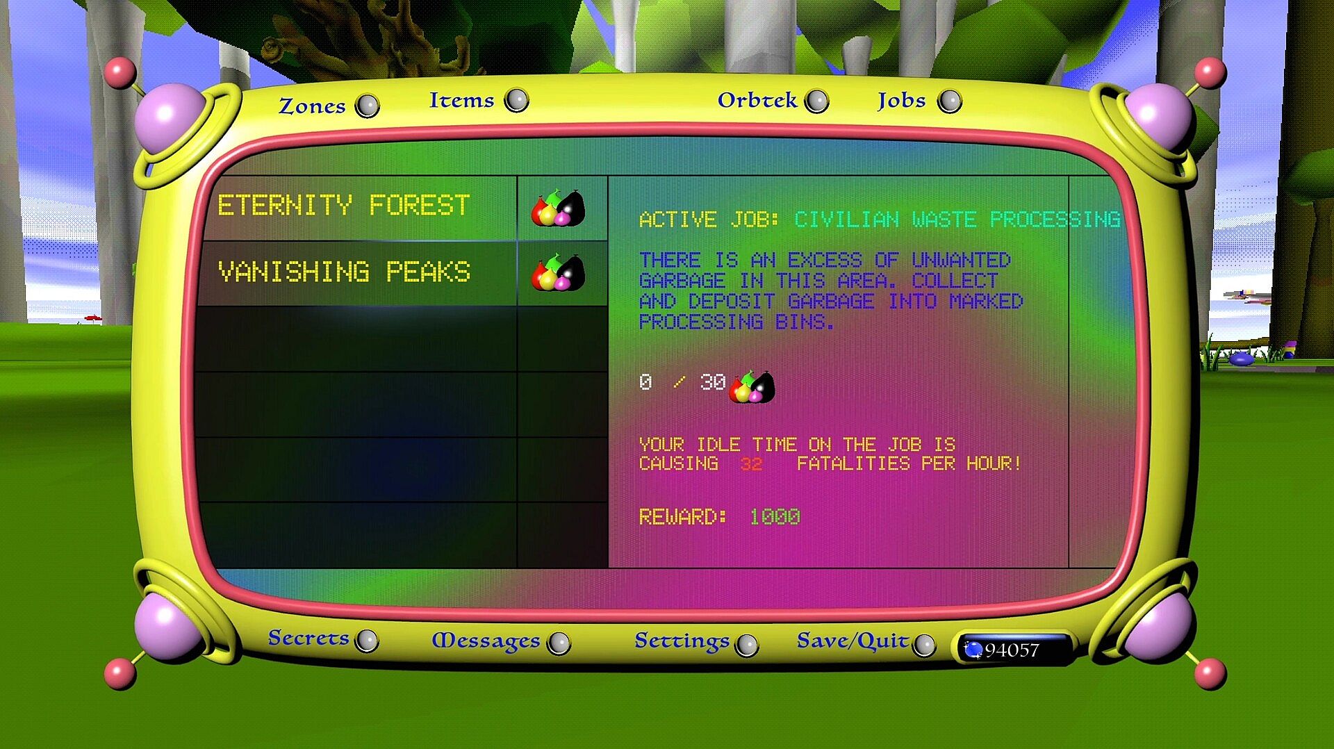 Pilot an upgradeable municipal waste disposal unit and navigate the overworld.