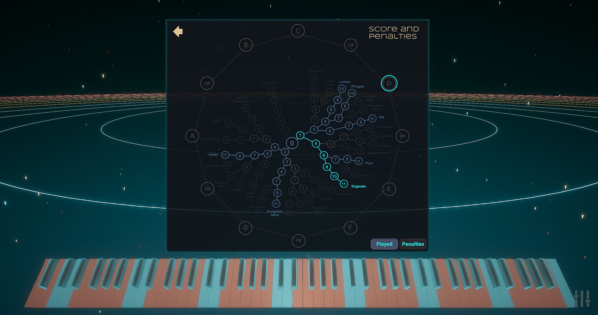 For those that want to master improvisation. Each game gives you a report on what chords and scales you performed well and poorly on. Use that report to build and connect drills to train the reflexes you bring back into the arena.
