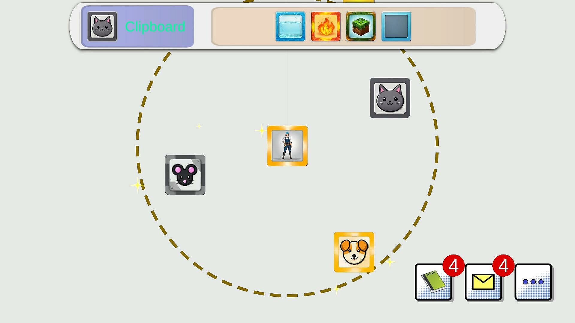 - Substances are represented as square-shaped graphic objects that can be freely moved and combined.