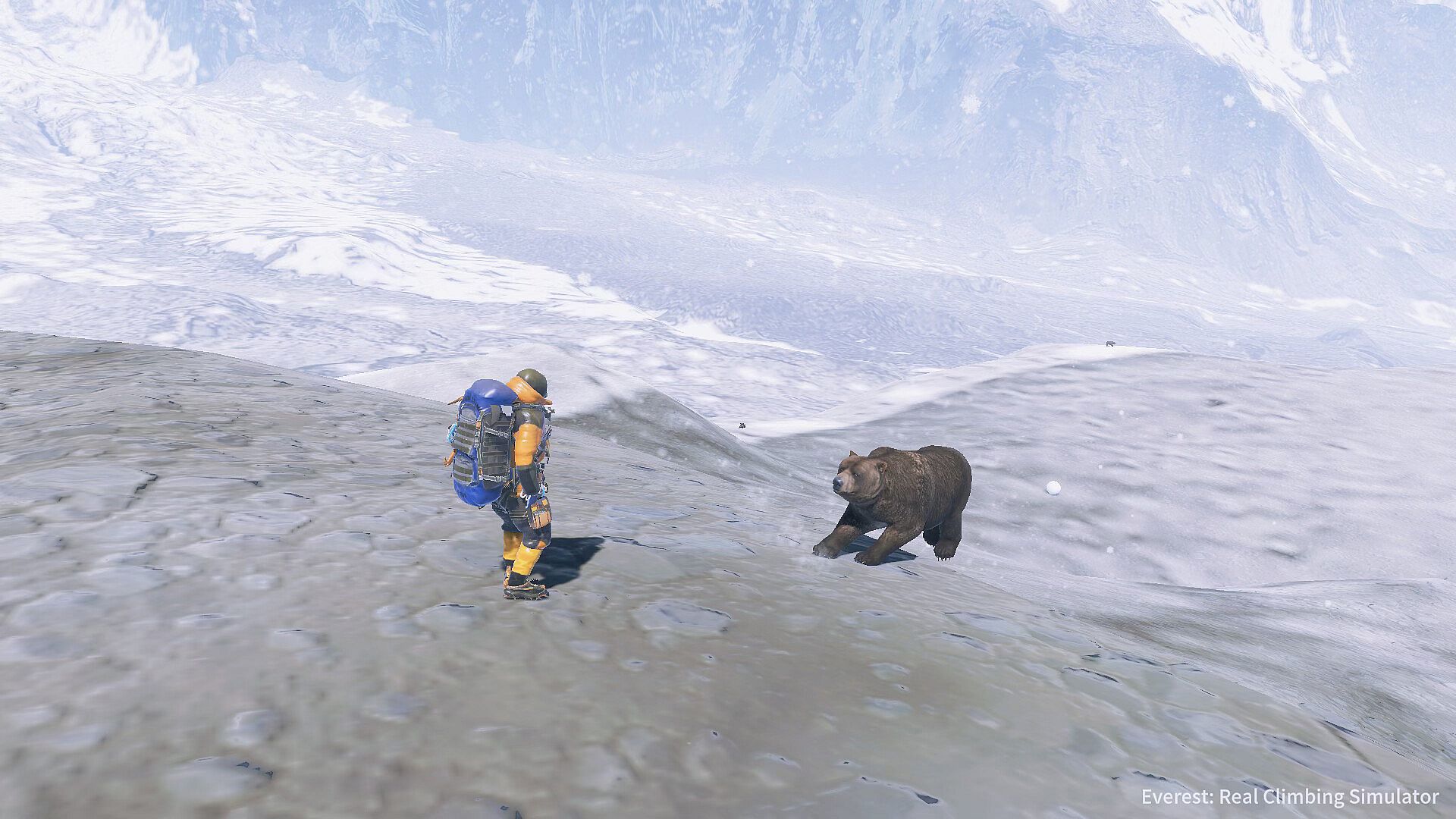 As for the bears, wolves, and snowmobiles: at first, the game was intended to be a fully realistic Everest climbing simulation. But during testing we realized that, at the true climbing pace, a single ascent would take about 4 real-time days. Very few players could push through 4 days of endless snowfields without anything else happening.