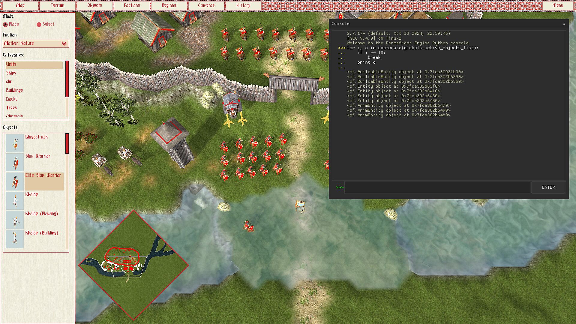 EVERGLRORY is powered by the fully open-source Permafrost Engine. Re-balance units, tweak missions, or change the fundamental rules of the game all by editing a couple of lines of Python. All the tools used for creating the campaign are included with the release.