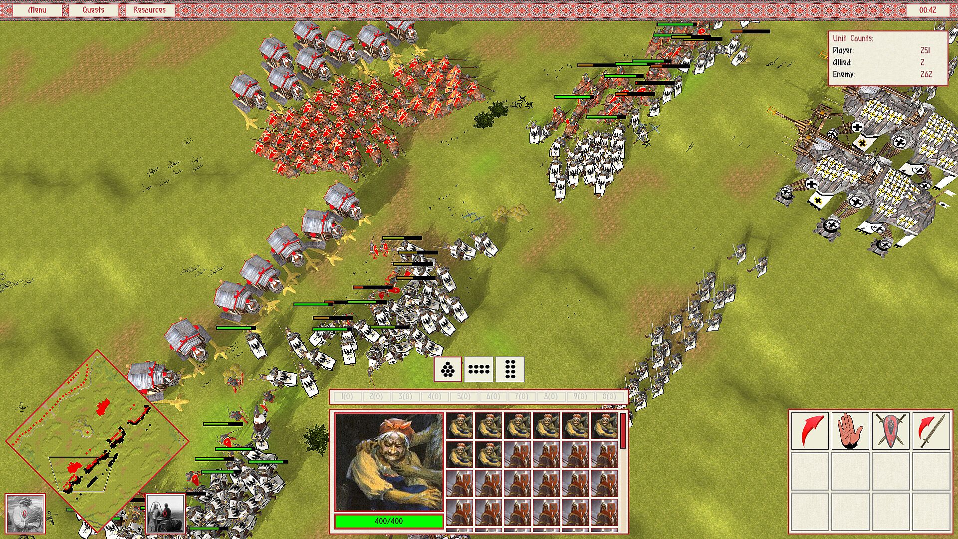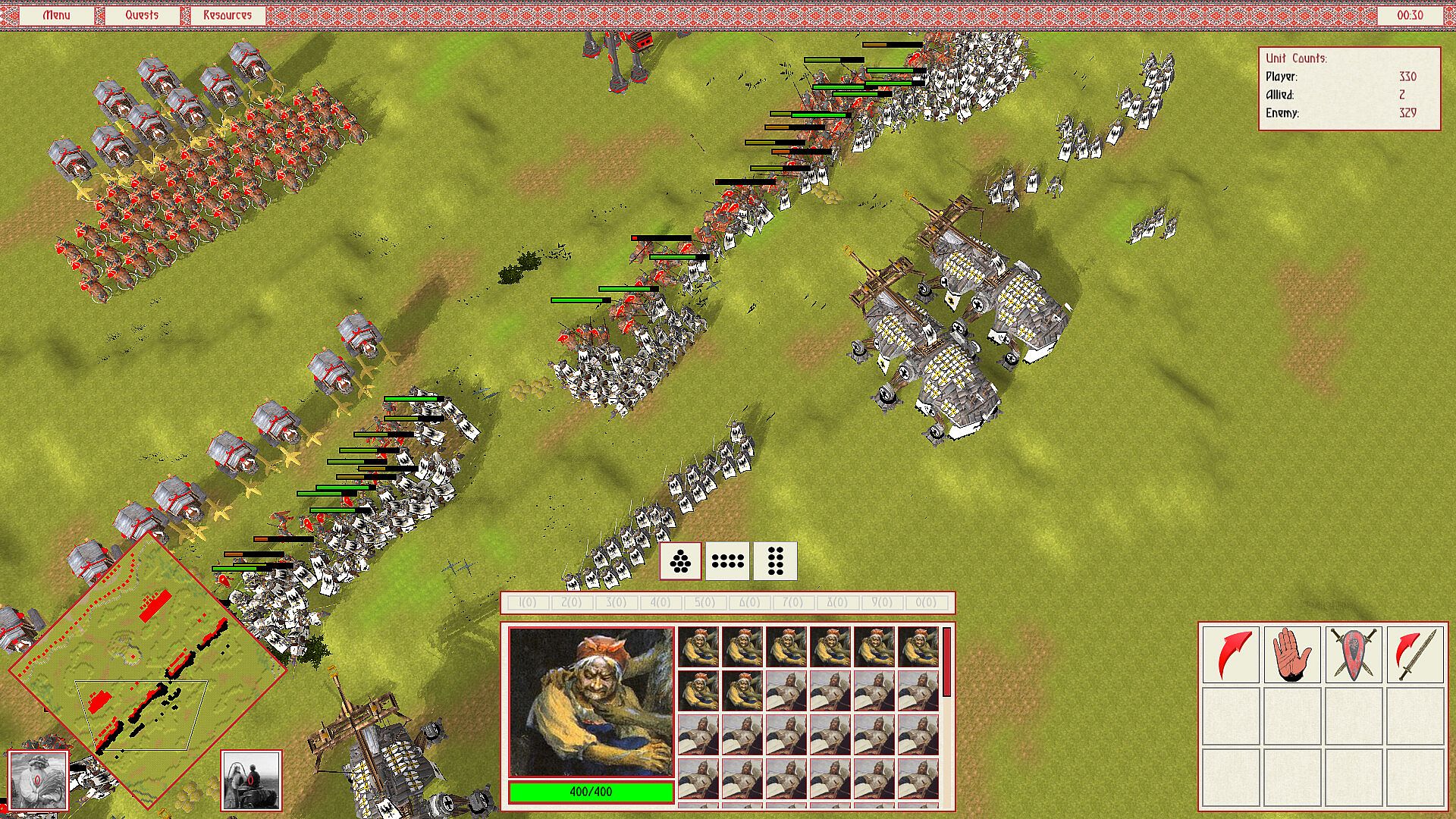 Guide up to 1000 individually-controlled units through the battlefield. Explore enormous maps stretching across 1024x1024 tiles.