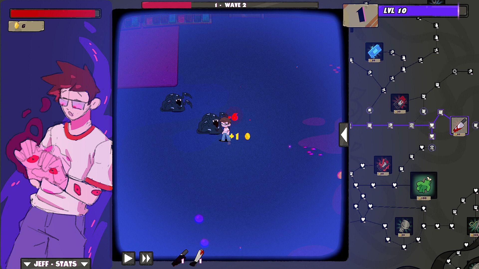 Explore the talent tree and make Jeff stronger (and weirder) to beat his enemies.