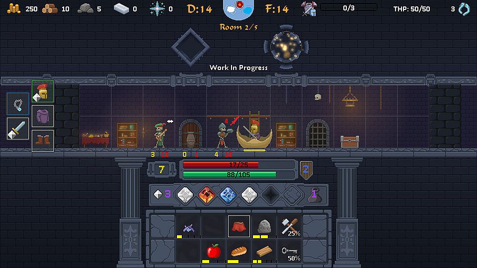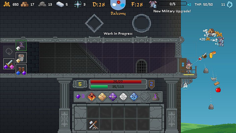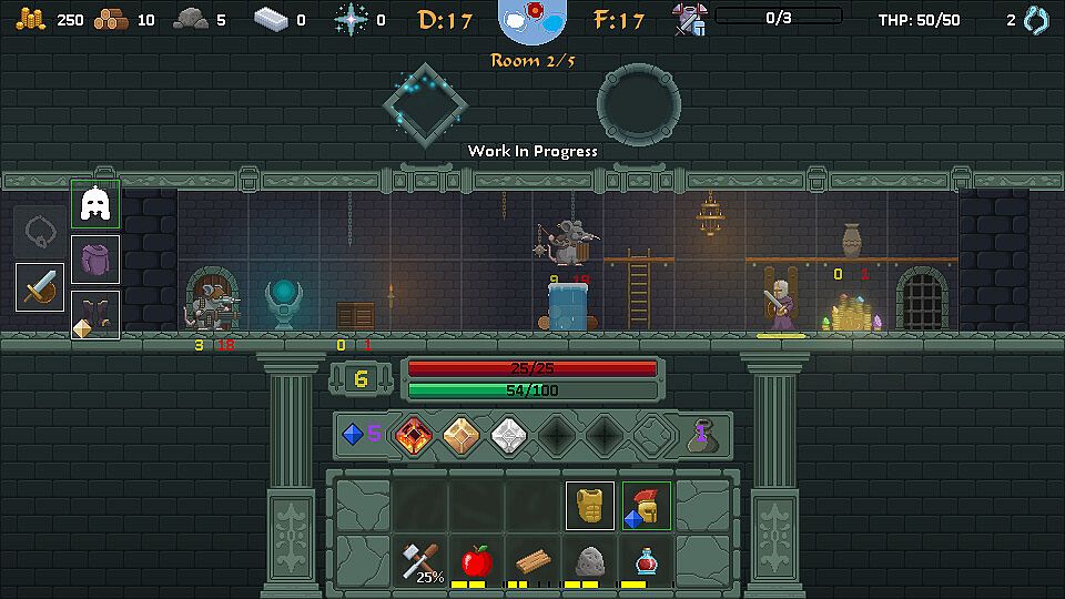 - Manage your limited inventory space, decide what you need the most: more resources to improve your Town or extra tools and equipment to facilitate your progression in the Tower.