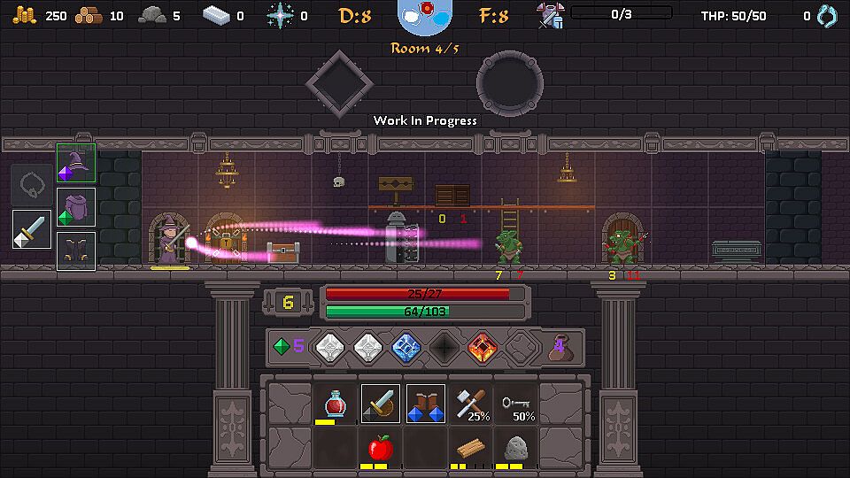 At regular intervals waves of raiders will attack your Town in an auto-battler kind of event. This is the Siege phase, completing the loop and linking all three phases together. Your defenses needs to be strong enough to stop them at all time, so make sure you extract enough building materials from the Tower.Everise will challenge you to a game of constant fine balancing and optimization. The hero you send in the tower can't die, but you'll have to be efficient to maximize the amount of ressources you can grab before your daily health & stamina pool is depleted. To help you with this you'll collect Magic Gems allowing you to cast a variety of spells to get the upper hand on the battlefield.
