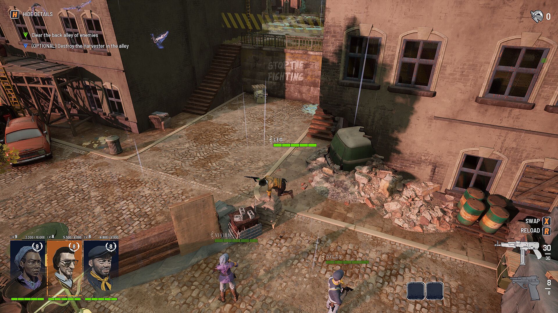 Take on a variety of mission types to thwart the alien invaders – shut down their harvesters, defuse their bombs, and take out their occupying troops to gain the skills you need and secure victory. Will you attempt secondary objectives to save other civilians at the risk of losing your progress? Or will you sacrifice the lives of those frozen in time in the interest of advancing towards your ultimate goal? With every new time loop, newly acquired experience and skills remain, and with every death, your band of civilians turn into hardened war veterans.