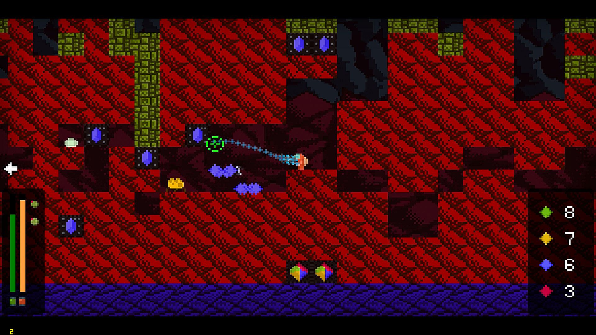 • Dig into the planet with your mining tool and discover caves and alien gems. Gems will level up your weapons, mining tool, and explosive damage.
