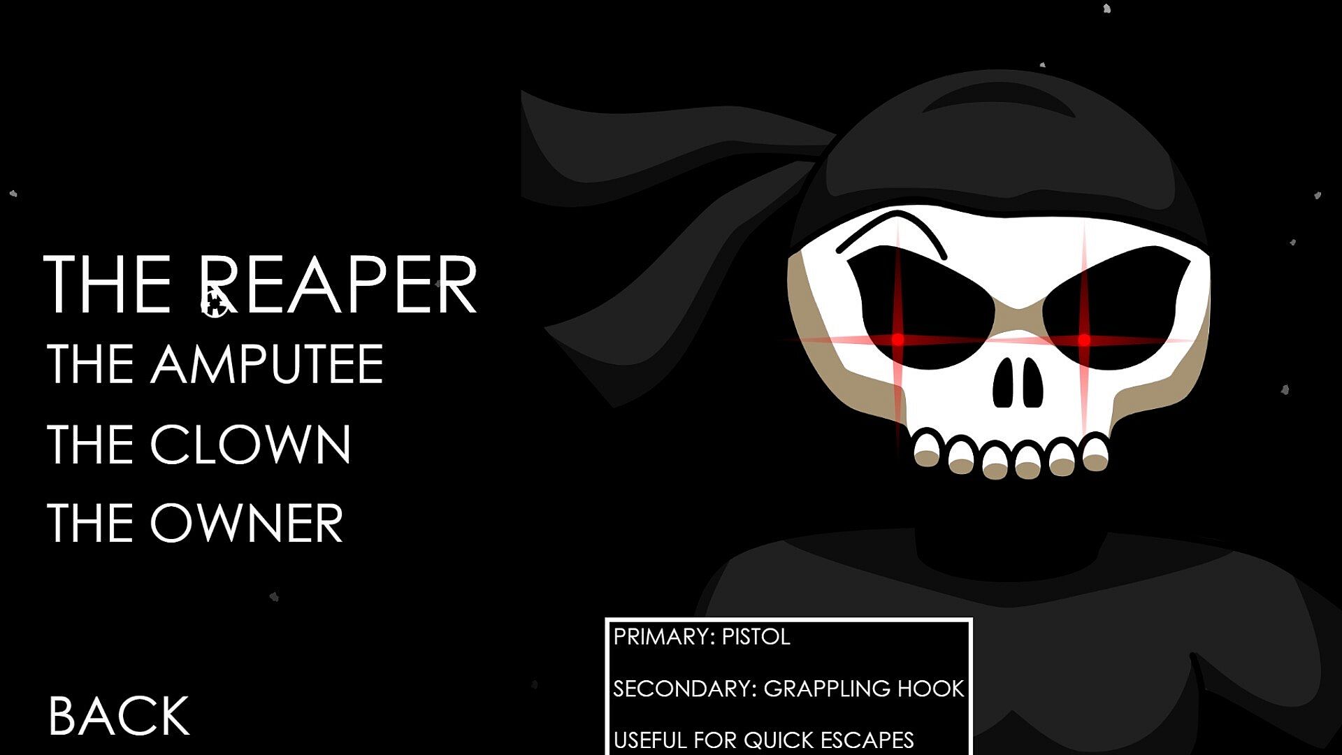 There are 7 playable characters, including The Reaper, Amputee, Clown, Owner, Psycho, Dragon, and Demon. Each character has their own unique abilities that serve a different playstyle and functionality each.