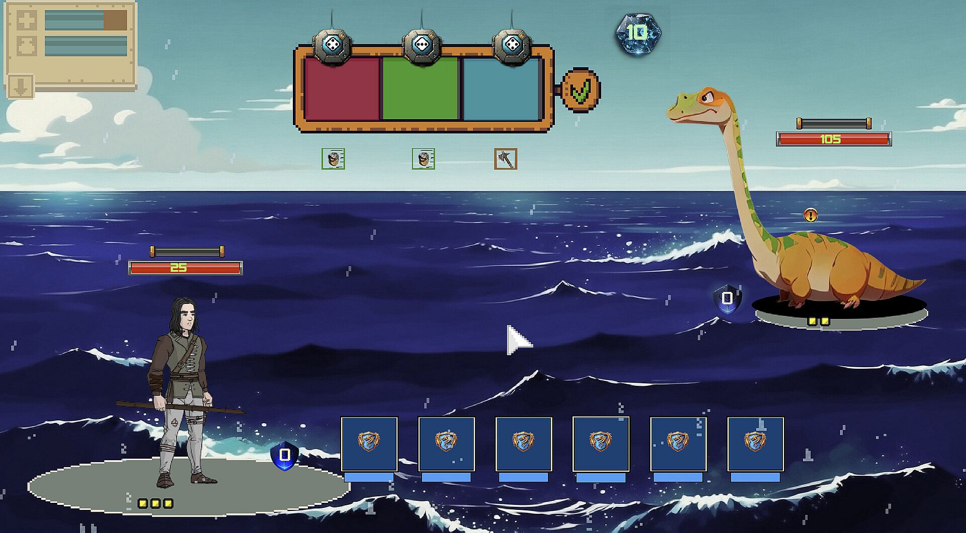 This is a roguelite creature survival game. Hatch your water dragon and gain xp to see how many days you can survive on the randomly generated planet. Build a house with a forcefield, build campfires and grow plant life. Earn evolution gems to evolve your dragon. Fight with your chosen abilities in a unique card battle system.