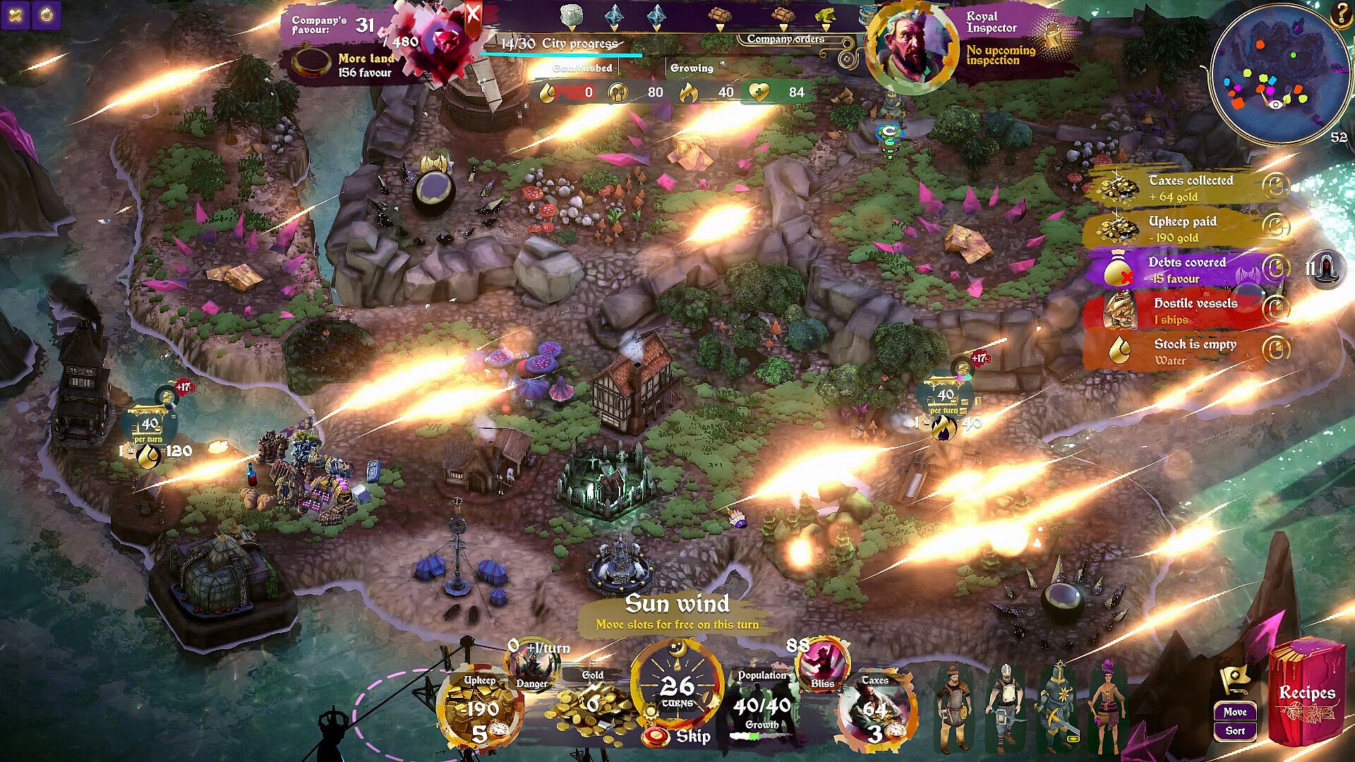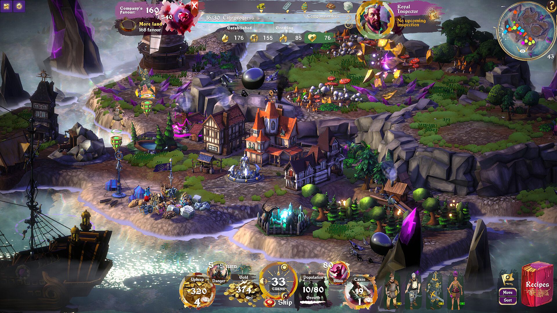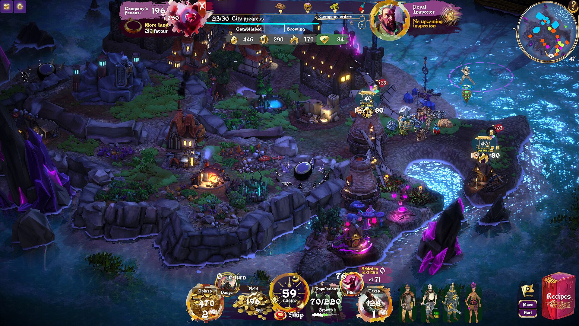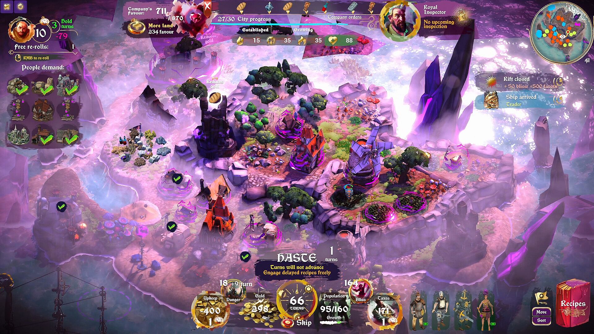 We combined a city-building simulator and crafting alchemy game to get an interesting turn-based strategy. In this game, you do not just build buildings, but change those that are there into the ones you need, spending and receiving resources.