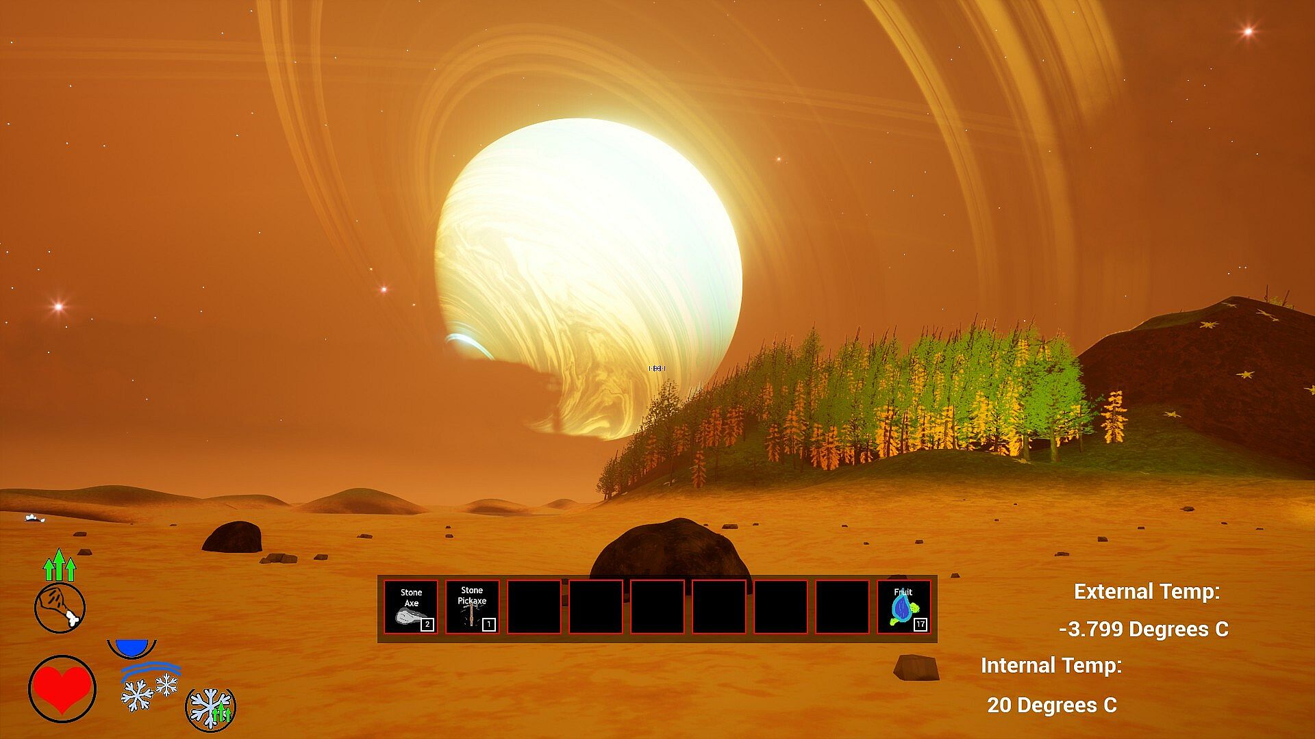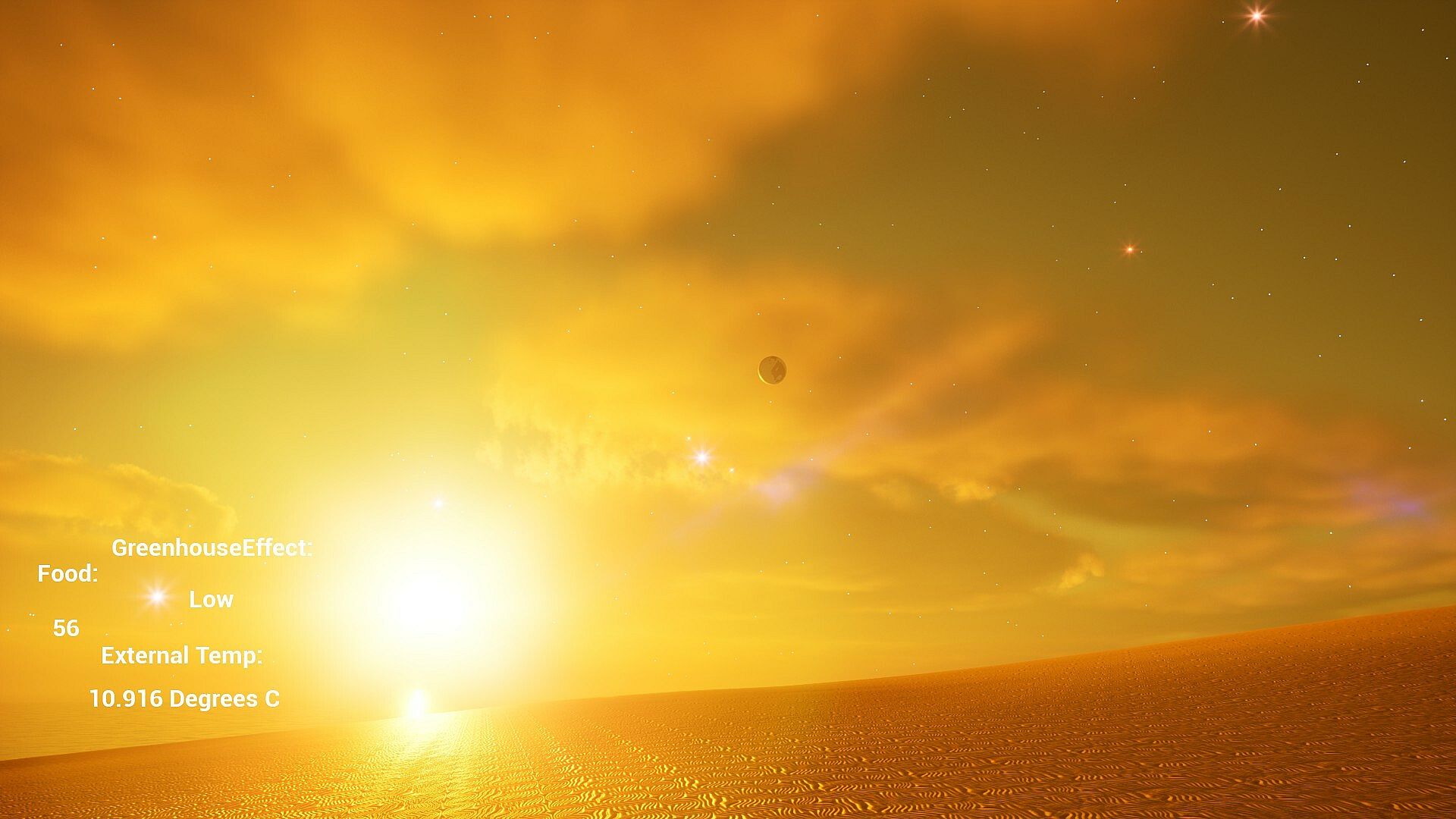 The star, plants, animals, and rocks will change as time moves past, the game simulates evolution as if hundreds of generations happen with each new offspring. Animals may sprout 7 legs and 5 mouths, maybe trees will prefer to be upside down. The star, if massive enough may go supernova after expanding as it burns helium, becoming a neutron star or black hole. Perhaps it will just become a white dwarf and fade slowly for trillions of years. Maybe you will not get a star at all, just a failed star called a brown dwarf that glows for a little while before fizzing out. The Rocks will erode away and leave pebbles and stones for you to pick up and use in your crafting.