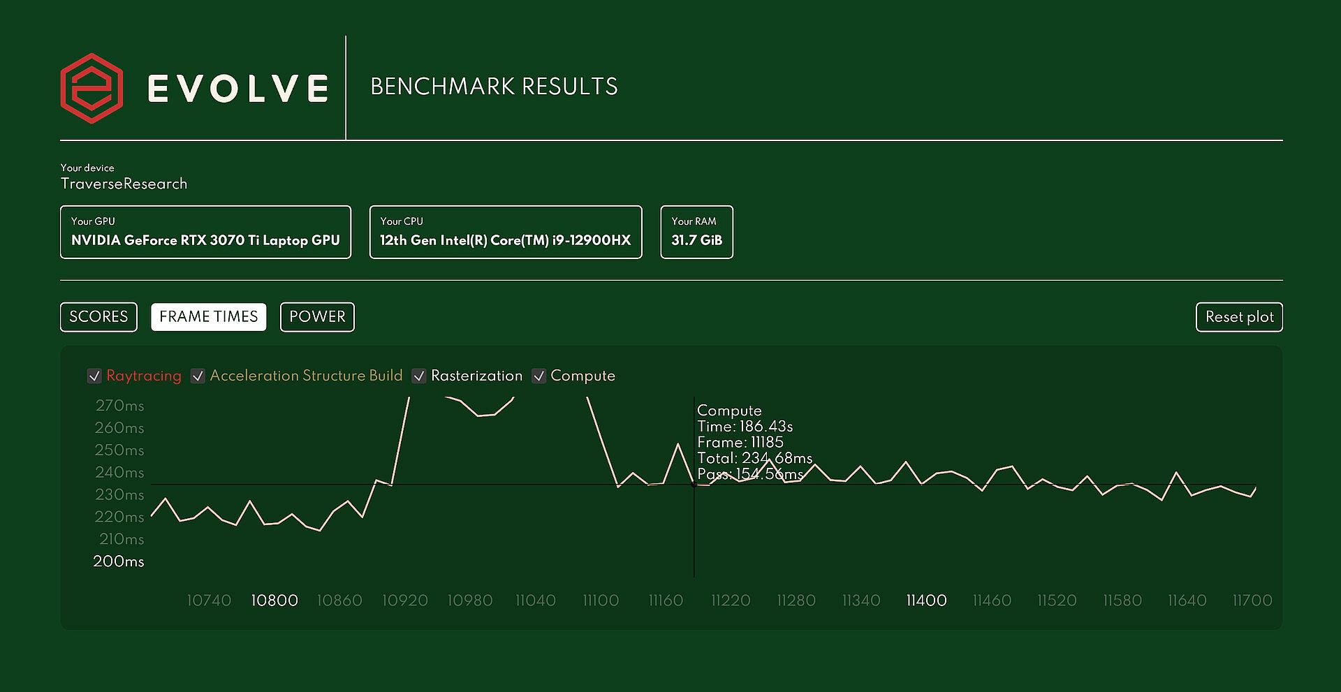 With Evolve, you can easily identify hardware trade-offs, pinpoint bottlenecks, and explore various rendering techniques used in modern game engines. This repeatable, deterministic scoring system ensures reliable analysis, giving you all the insights you can ever need.