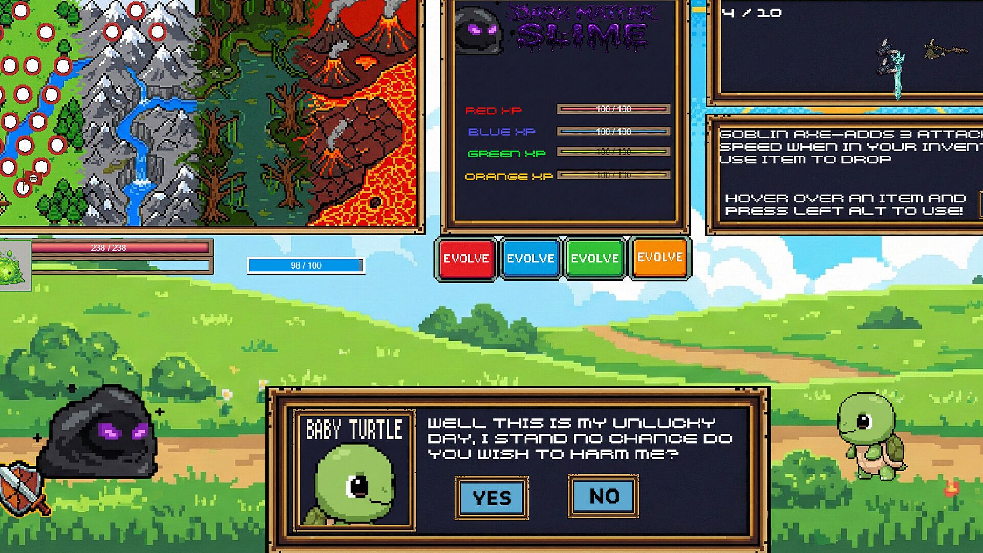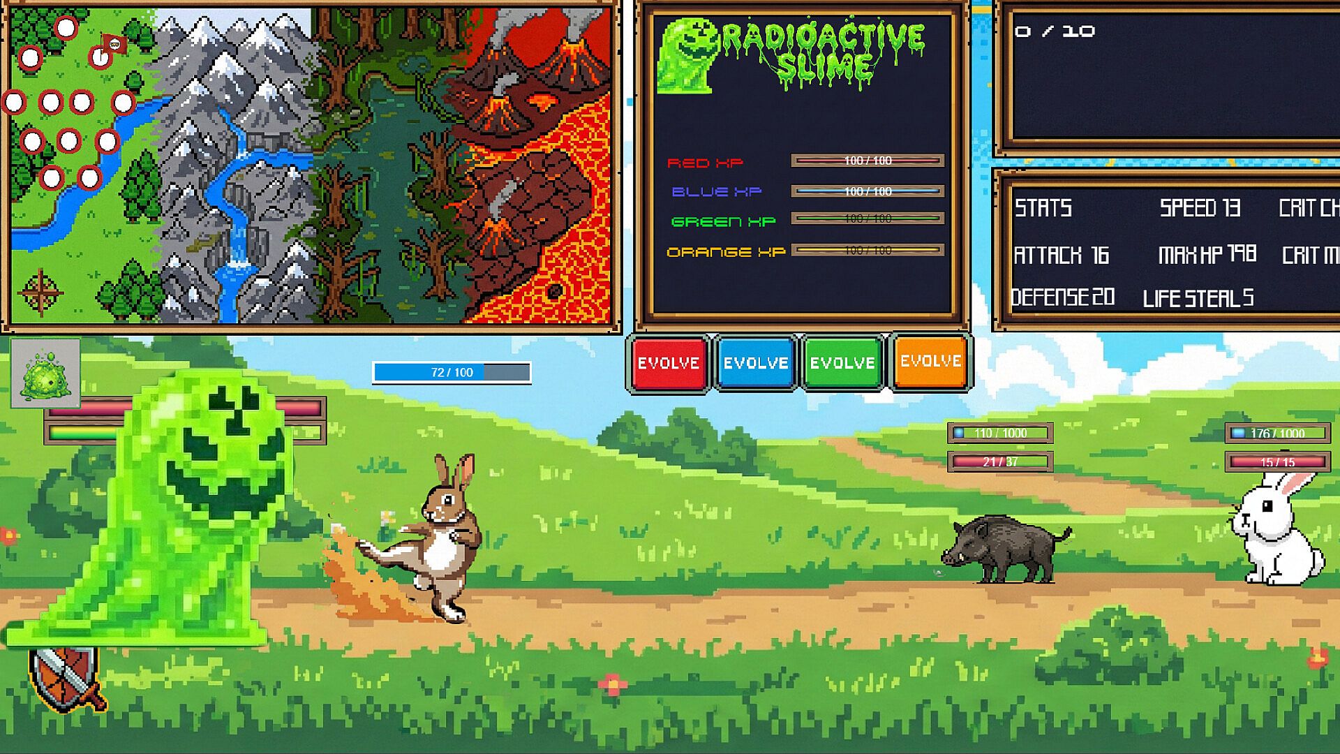 the slime currently has 62 distinct evolutions. The player is encouraged to figure out what goes well with there build and what evolutions are not.