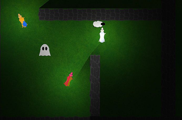 Ewephoria is an arcade style game where you're a group of sheepdogs trying to herd sheep to safety. Designed to work best with a group of friends crowded around the screen you each use the interactive controllers on your phones to move your sheepdogs around the map, chasing the sheep and saving the day! On your sheepherding travels, you'll encounter various other animals, from angry cows which trample sheepdogs underfoot to hungry wolves which are on the hunt for some nice tasty sheep.