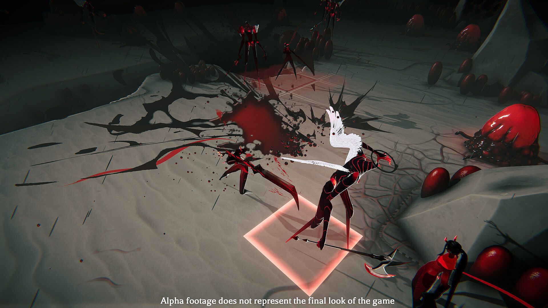 In a world drained by the Purge, blood is defiance. Each drop of it paints the world in reds and blacks, as a reminder that life fights back. This is not just violence, it's a vivid rebellion in a pale, colorless world against those who would see it in Stasis forever.