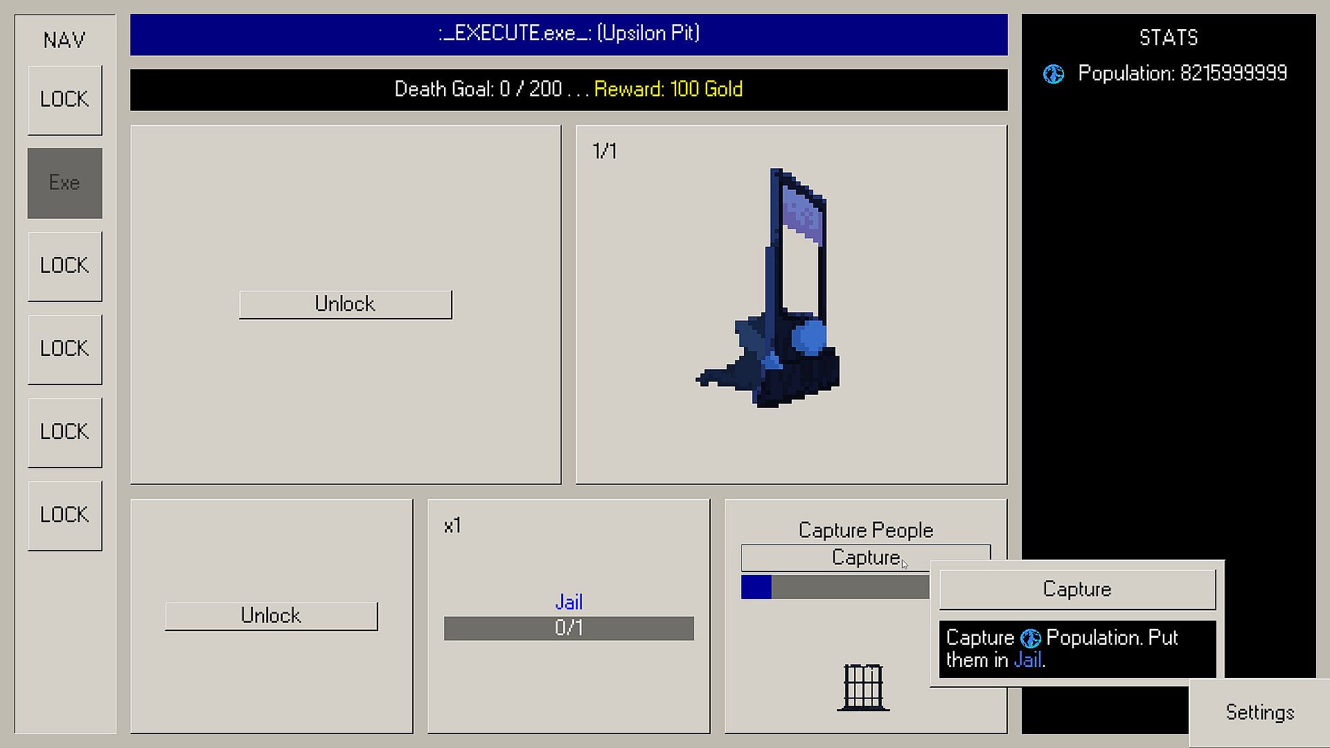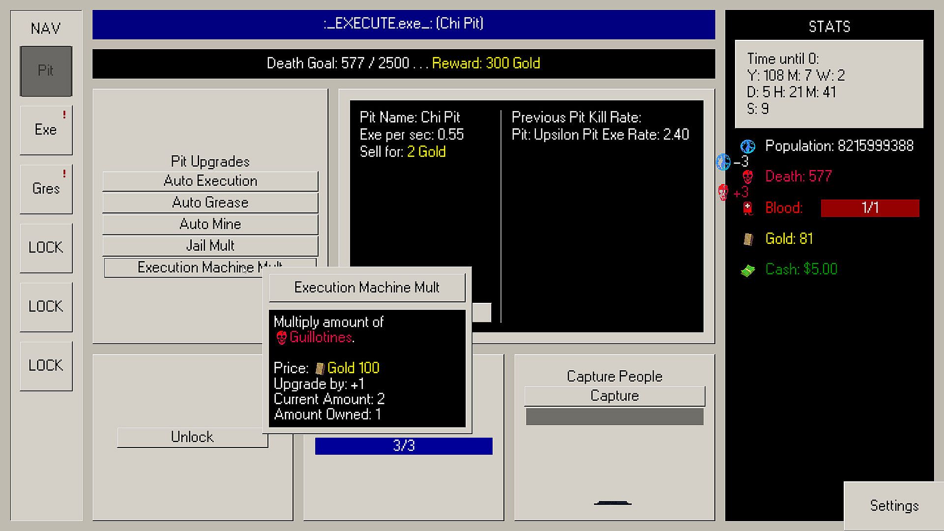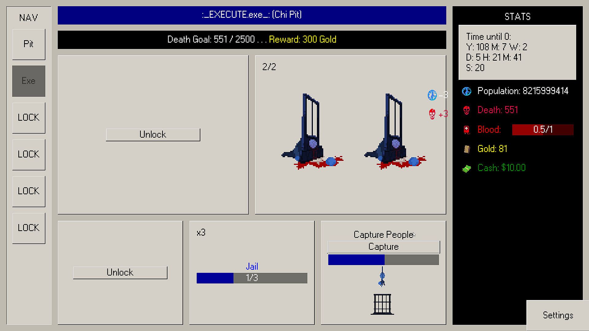 Execute is a short active incremental game about reducing the world’s population from 8 billion to zero.