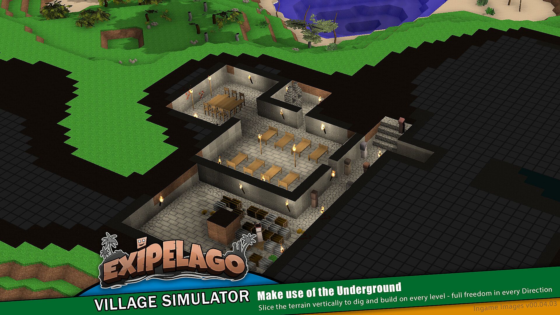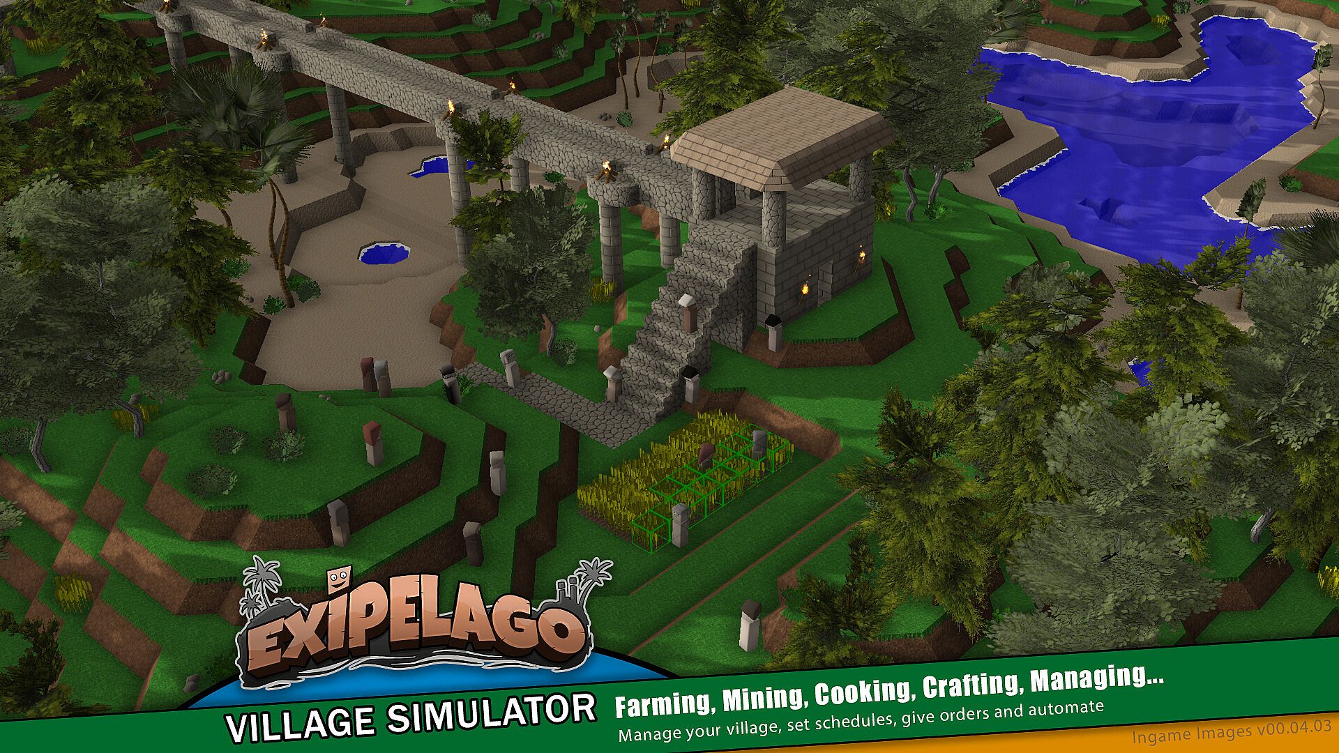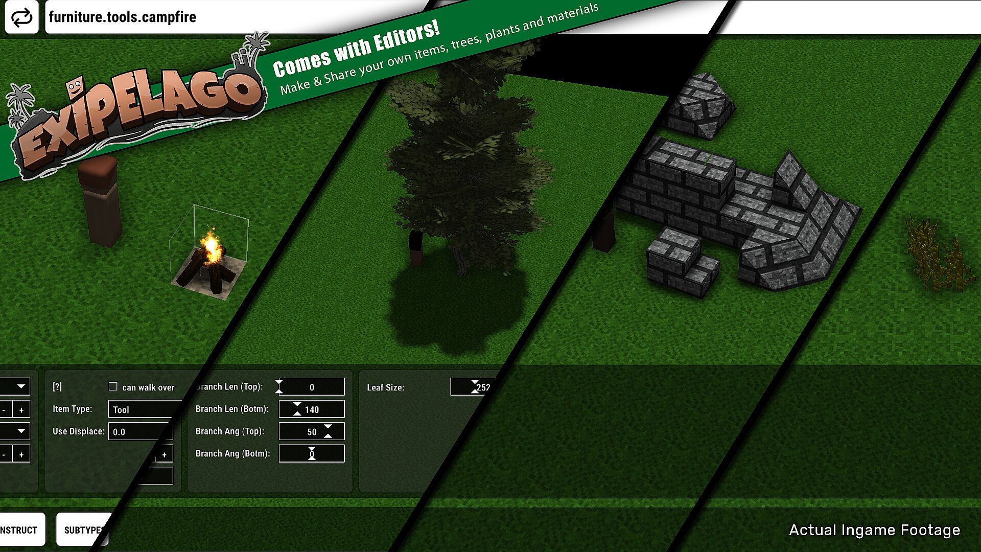 Exipelago is a sandbox village managment game, where everything you see is procedurally generated and customisable. Every tree you fell will give it's distinct type of wood, which can be processed into it's distinct type of plank to ultimately craft an item which has the optical style of the tree it was originally made out of. The same is true for every other ressource, like different types of rock and ore - both being found by digging down into the earth. And with the supplied editors you can even make your own things like trees, materials, plants & items