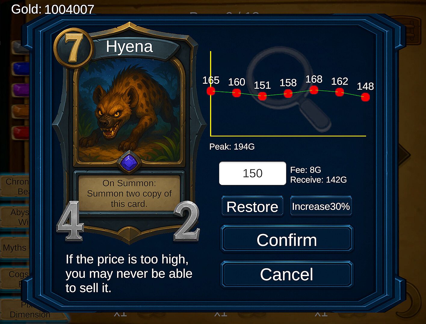 Card Trading: Sell your extra cards on the market, track price fluctuations, and make a profit.