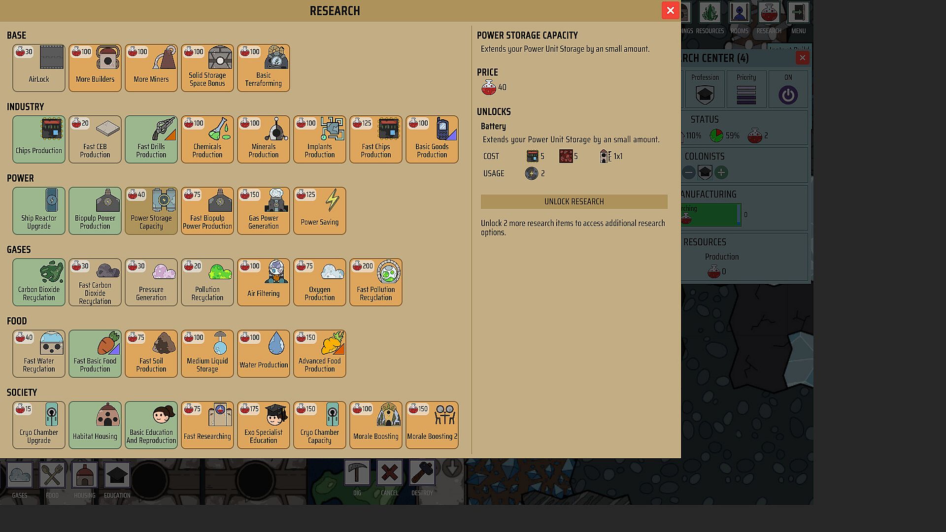 Research: Unlock new possibilities, buildings, and recipes via the research tree.