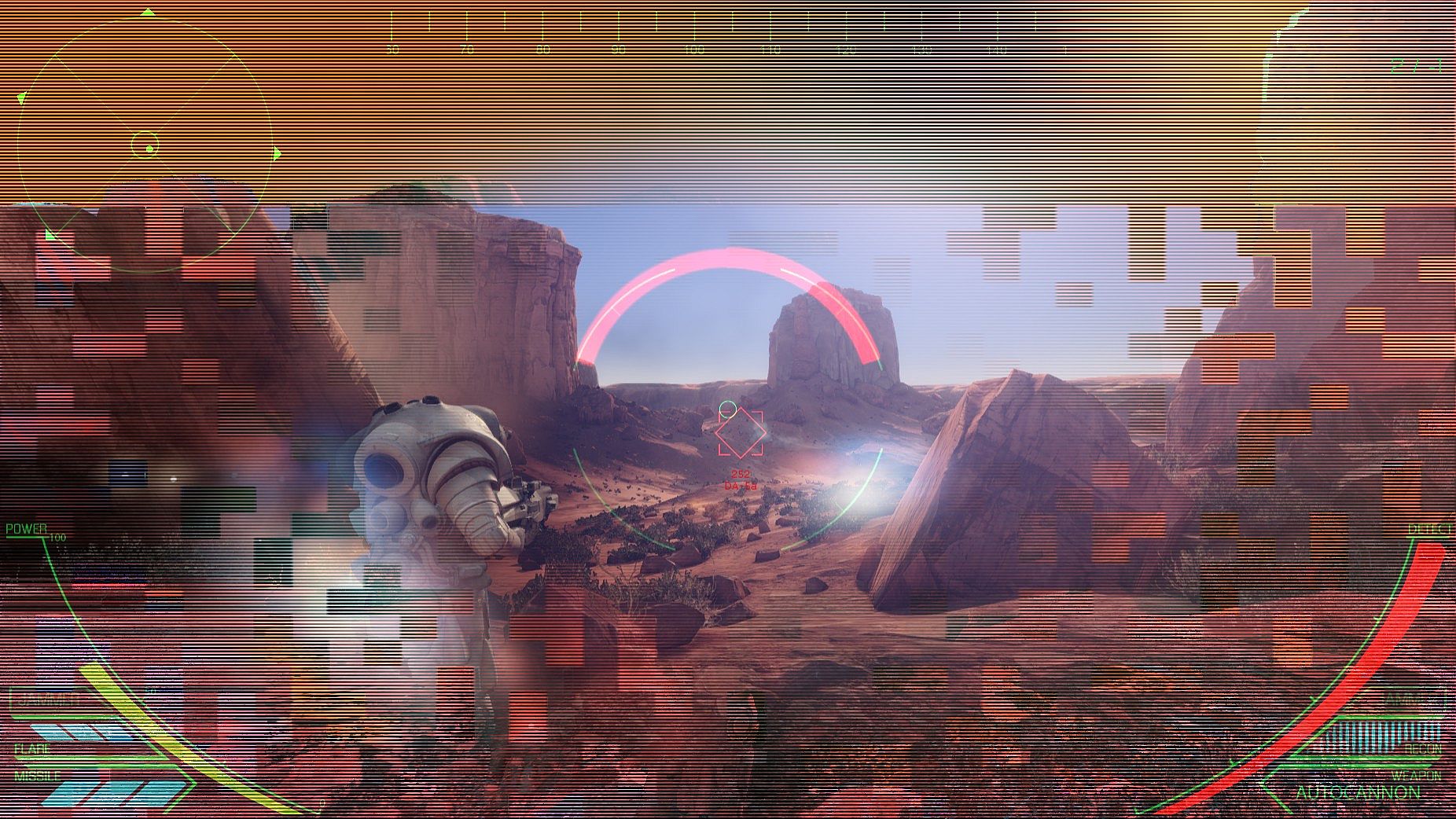 Gameplay is tuned towards a hide-and-seek experience, with intense firefights where players are countering each other by switching weapons and tactics on the fly. Your primary weapon is the Multirifle, one gun with six firing modes. In addition, your Exo-Armor can launch swarms of missiles at your enemy once you achieve lock. Use missiles to drive your opponent out of the sky. Use your Autocannon to bombard them on the ground. Use your Minigun to spray them at close range, or your Laser or Railgun to snipe them at a distance. Use your Plasma Rifle for the highest damage-per-second (if you're feeling accurate). Counter Missile Swarms by launching Flares, keep your Heat low to avoid enemy lock-on, use your Jammer to further avoid detection.